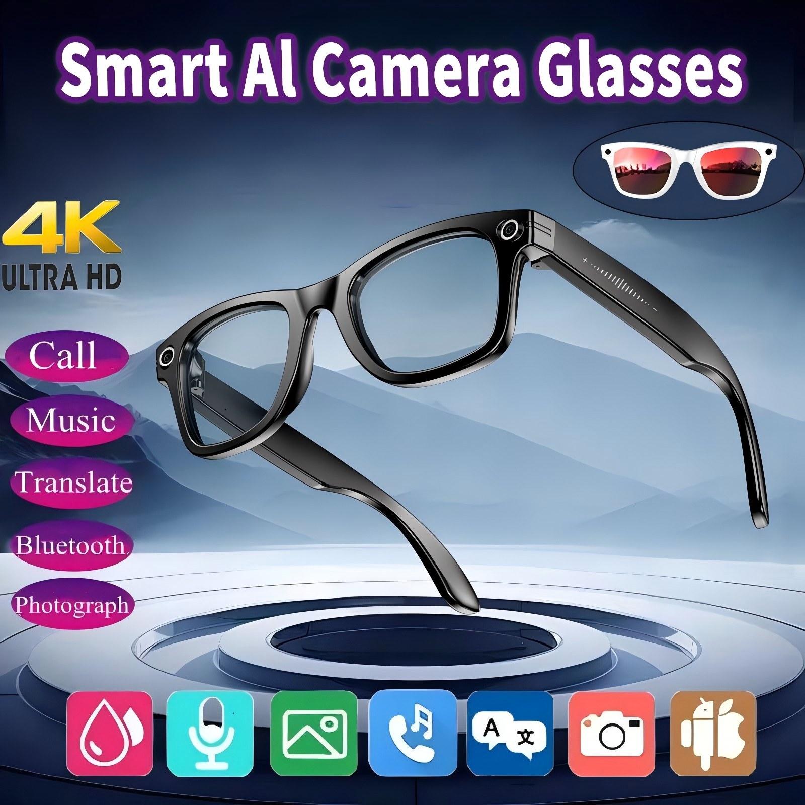 4K HD Smart Glasses AI GPT Camera BT&WIFI Call 270Mah Voice Assistant