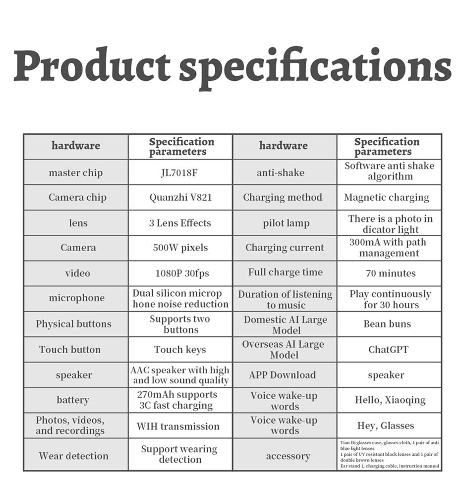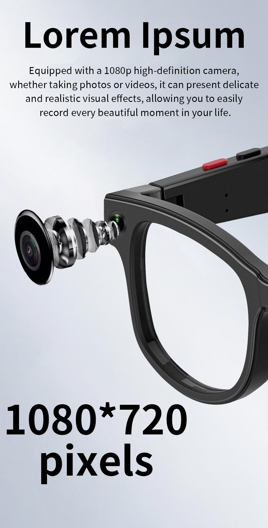 ▪Equipped with a -new 500w ultra-wide-angle camera and a dual-mic system,these glasses accurately capture everything you see and hear,Shoot high-quality photos and immersive videos.