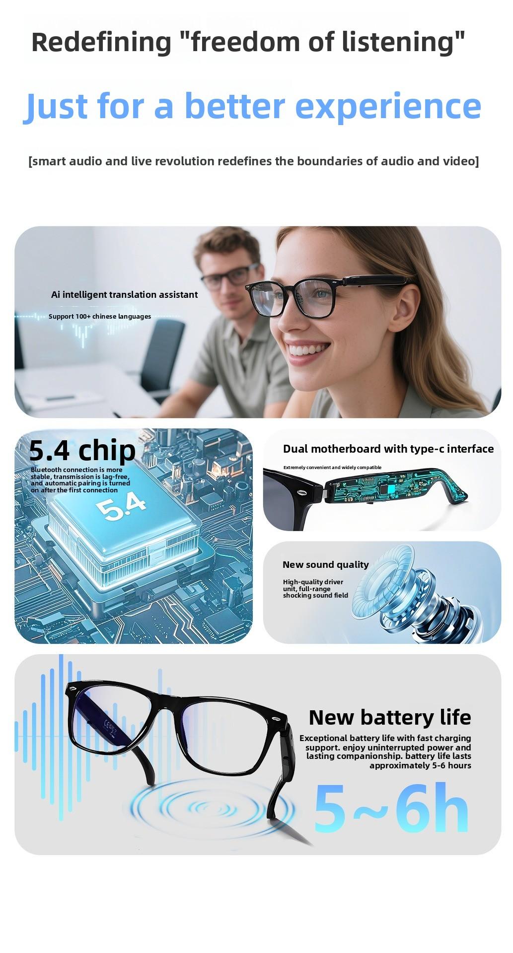 New AI Smart glasses glasses, translation in over 100 languages, for listening to music, making calls and viewing videos