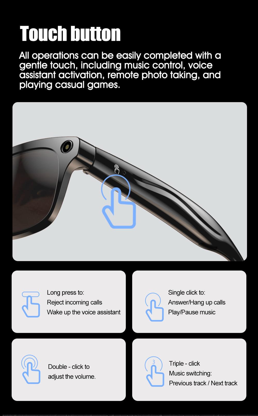 AI Translate Smart Glasses HD Camera Take Photo Record Video Bluetooth Call Music Stereo Mic Touch Sports Sunglasses Women Men
