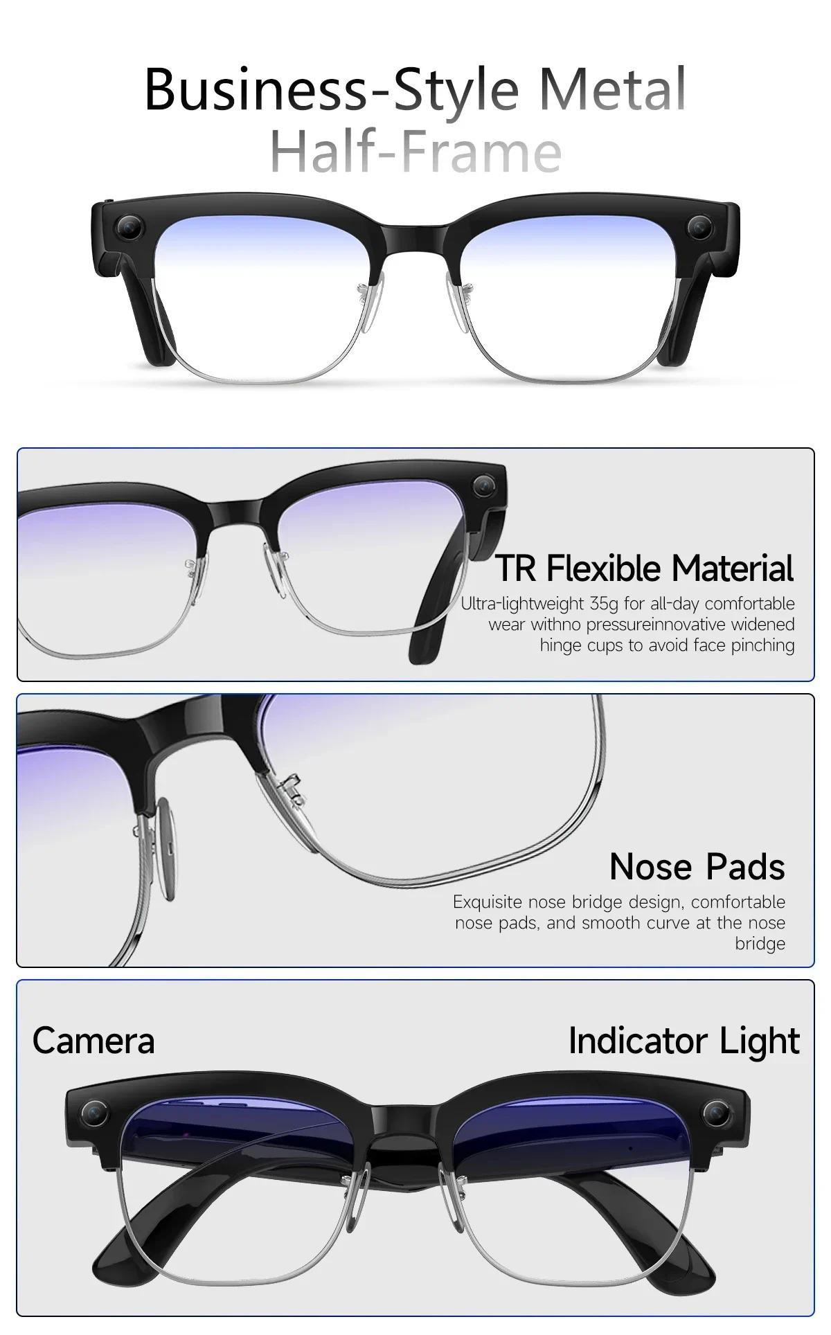 New AI Smart Glasses 8MP HD Camera Video Bluetooth Call Intelligent Translation 290mAh Battery Voice Assistant Music Sunglasses