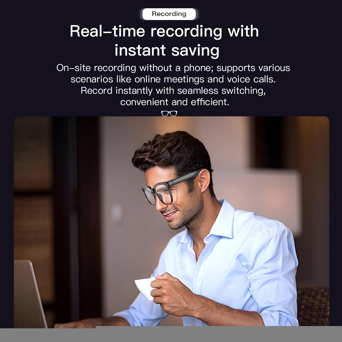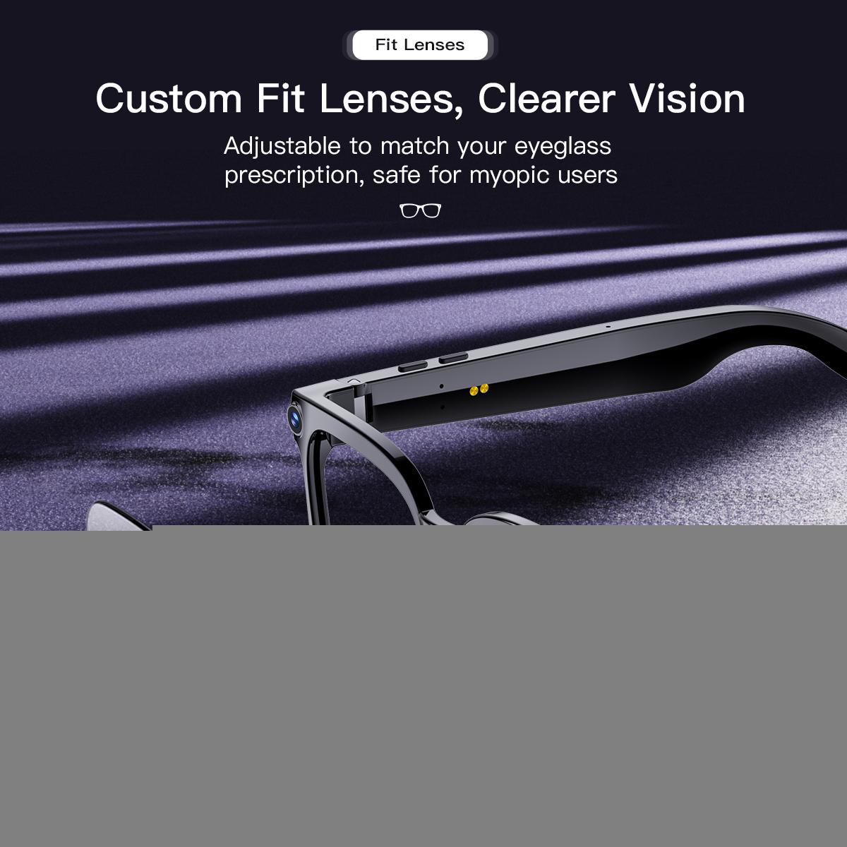 ▪Equipped with a -new 800w ultra-wide-angle camera and a dual-mic system, these glasses accurately capture everything you see and hear, shoot high-quality photos and immersive videos.