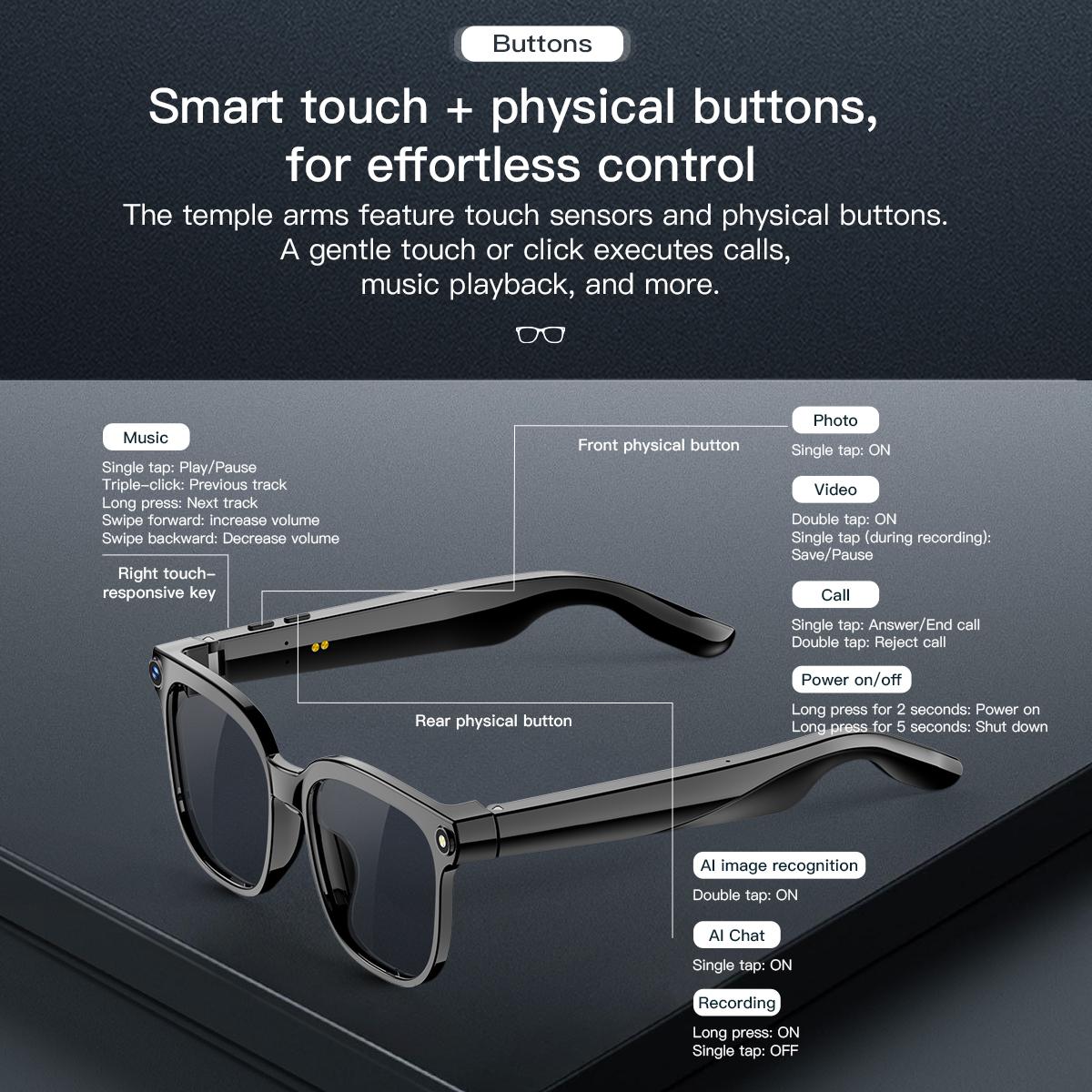 AI Smart Glasses 8MP Camera Video Recording ChatGPT Music Play Headphone Bluetooth Men Women Gifts Fashionable Glasses 2025