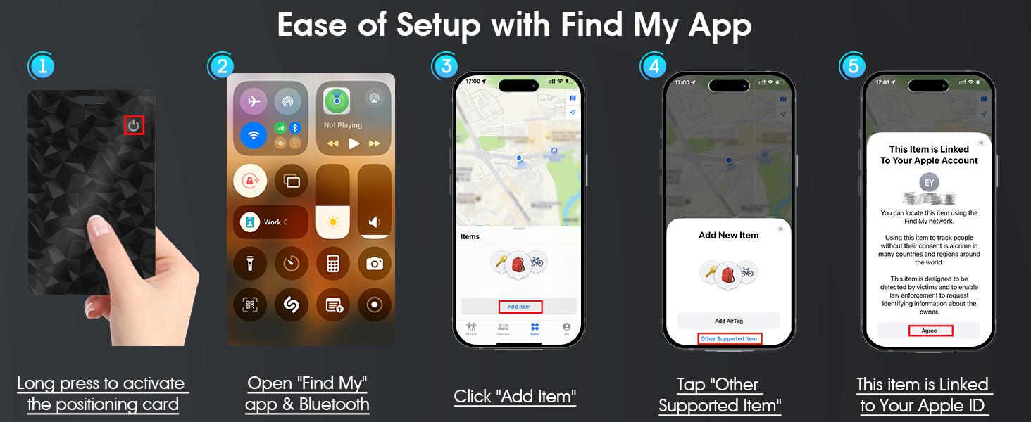 Easy Connection with Apple Find My: Easily pair KINDEEP Wallet Tracker Card with your Apple devices via the Find My app, helping locate your wallets, purses, bags, luggage, and more, never lost again. ONLY FOR iOS, NOT FOR ANDROID