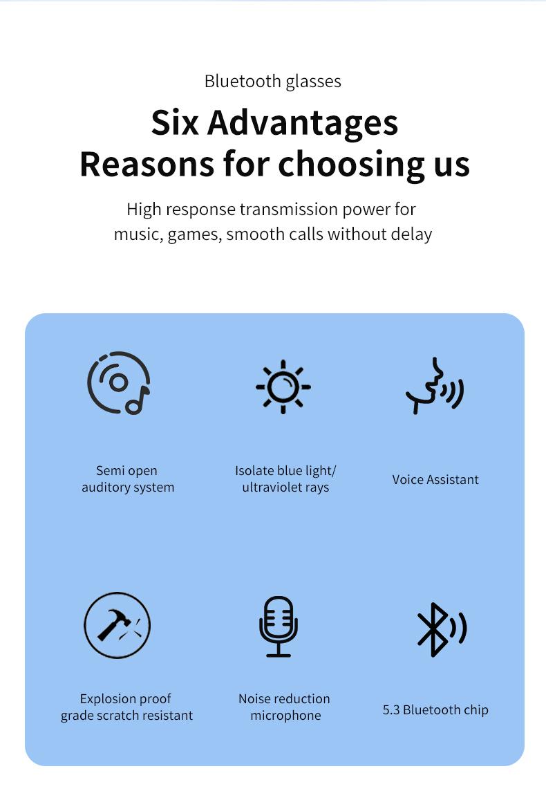 1.This Bluetooth smart glasses has the function of directional sound cavity, full of sense of technology
