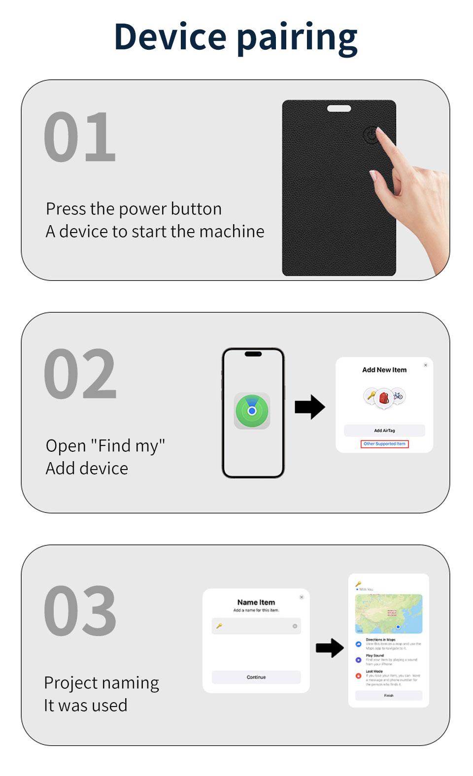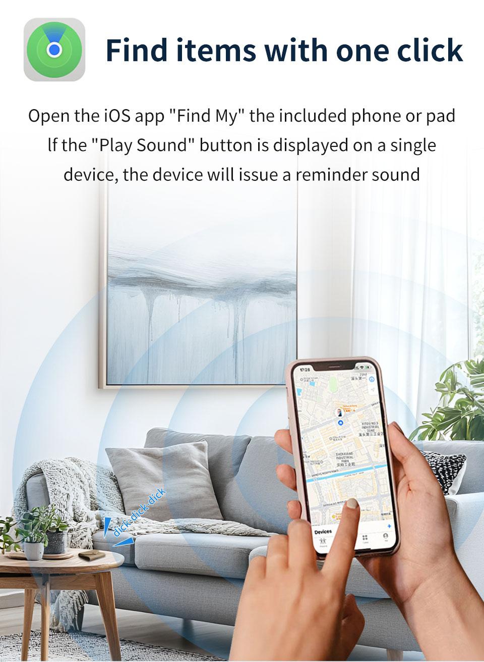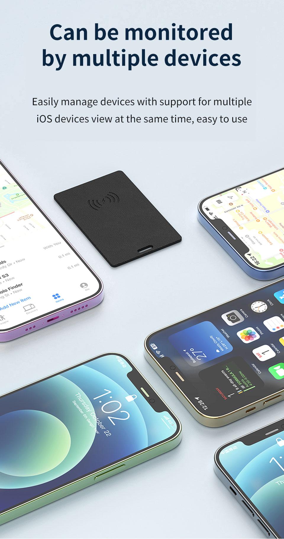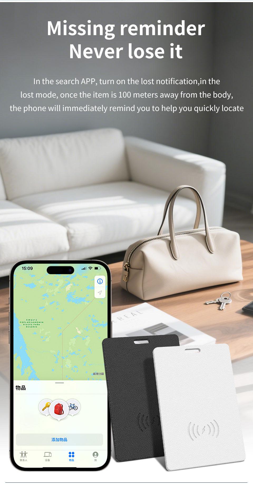 【Left Behind Reminder】: When the tracking card is out of Bluetooth range, your iPhone will receive a notification to remind you of the last location before disconnection. You can also view the tag's last location on a map using the "Find My" app. (Free app, no monthly fees or subscriptions required.)
