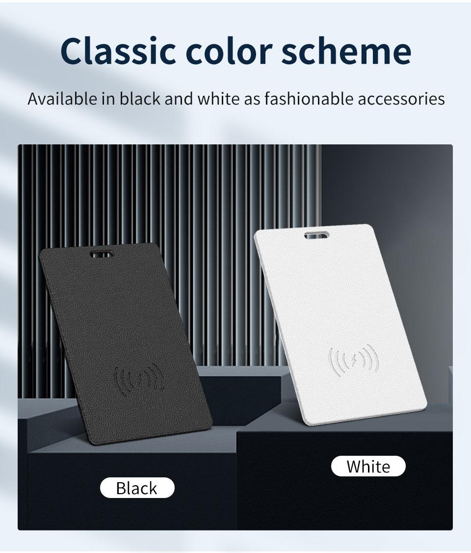 【Lost Mode: Turn on Lost Mode on the Find My Wallet tracker and enter your contact information in advance. Thanks to Apple's vast network of devices on Find My, anyone who finds your card can get your contact details through the "Identify Found Items" feature in the Find My app. When a device on the network finds your phone, your phone will automatically receive a notification. Product specifications: Color: Black/ White Material: ABS Size: 83*55*3.8mm Charging method: Wireless charging Applicable models: iPhone, MacBoock, iwatch, iPad APP: Find My (cannot be used on Android) Packing specifications: 1PC * Tracking card