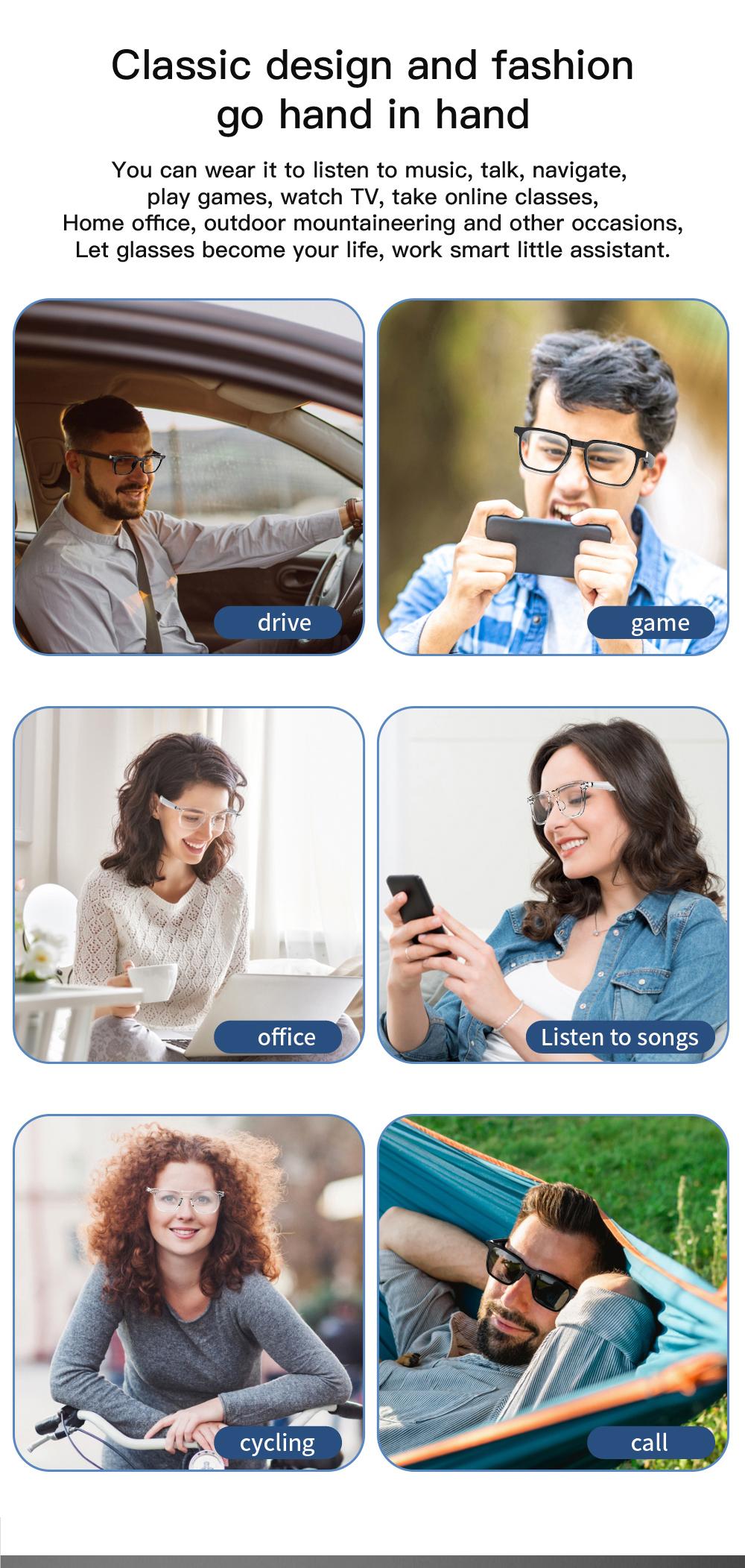 AI Smart Translate Eyeglasses Receive Call Voice Assistatn Listen Songs Anti Blue Light Noise Canceling Smart Glasses for Man