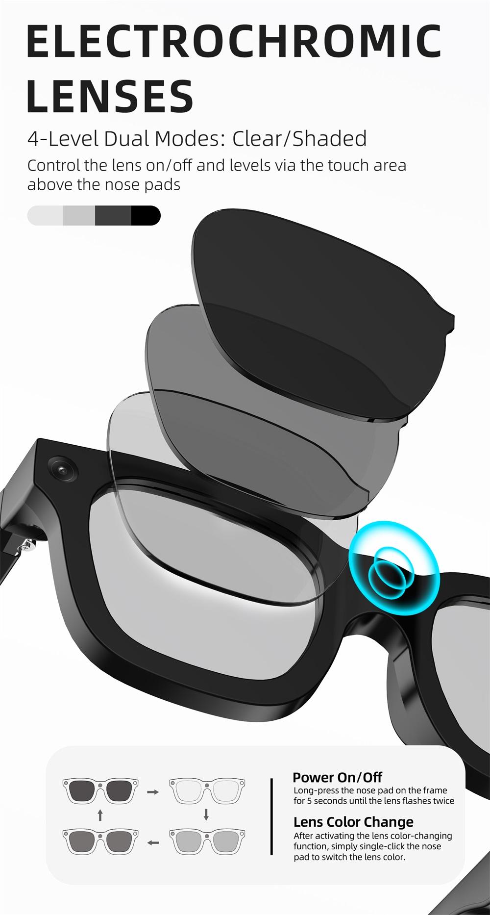 Electrochromic Touch AI Smart Glasses Photo Video Identification Recording Bluetooth Call Eyewear Music Multifunction Sunglasses