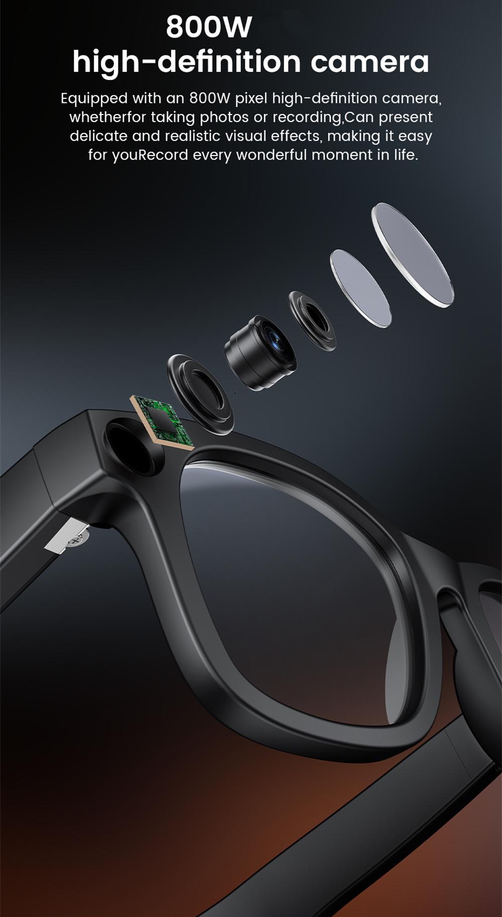 Introducing the AI Smart Glasses, featuring real-time translation and 800W camera. These eyewear offer Bluetooth calls, video, and music playback. Perfect for men and women, they integrate cutting-edge technology for a redefine visual experience. The glasses support Wi-Fi transmission and come with software anti-shake algorithm.