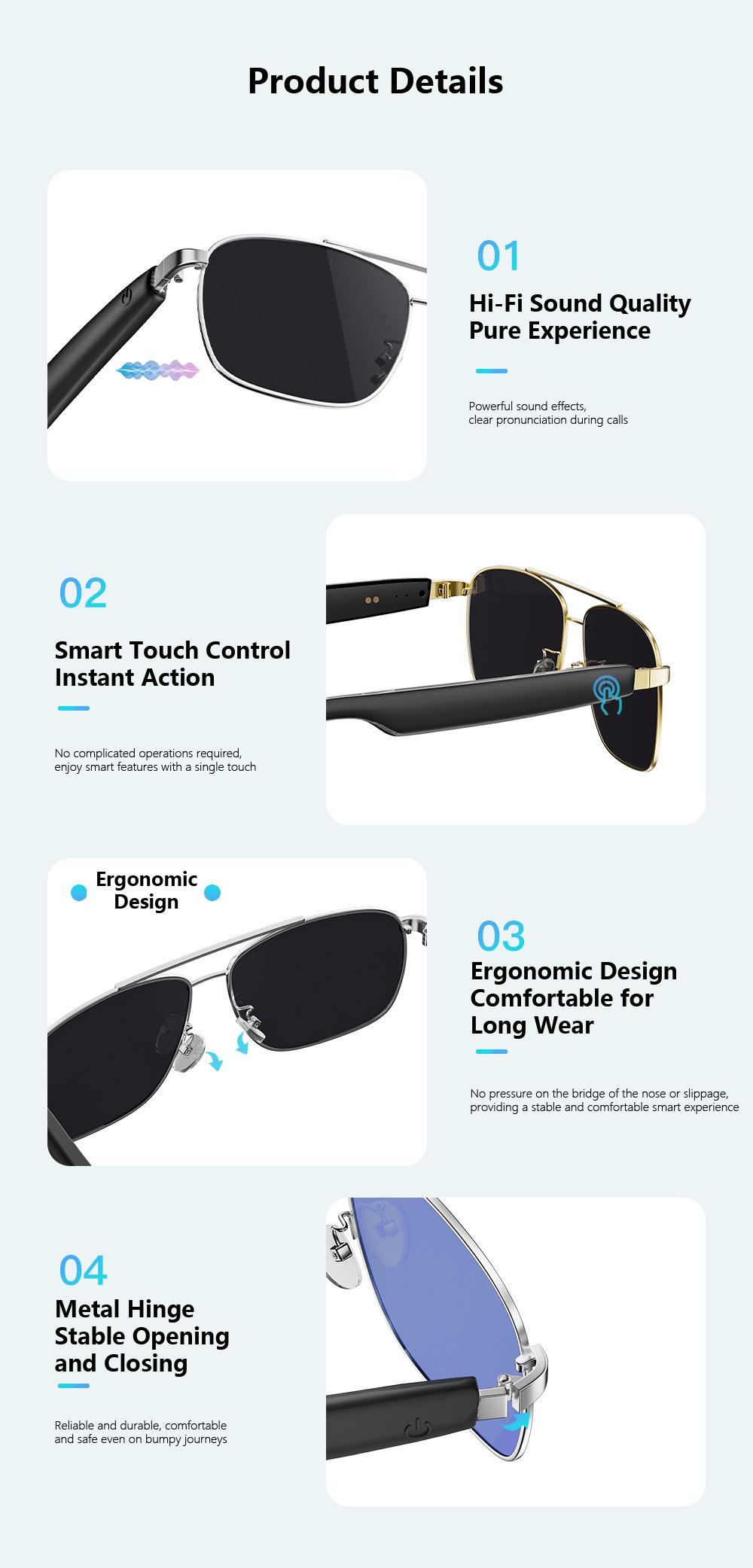 AI Smart Translation Glasses With Bluetooth Call Music Support Multiple Languages For Business Trips Travel Sunscreen Men Women