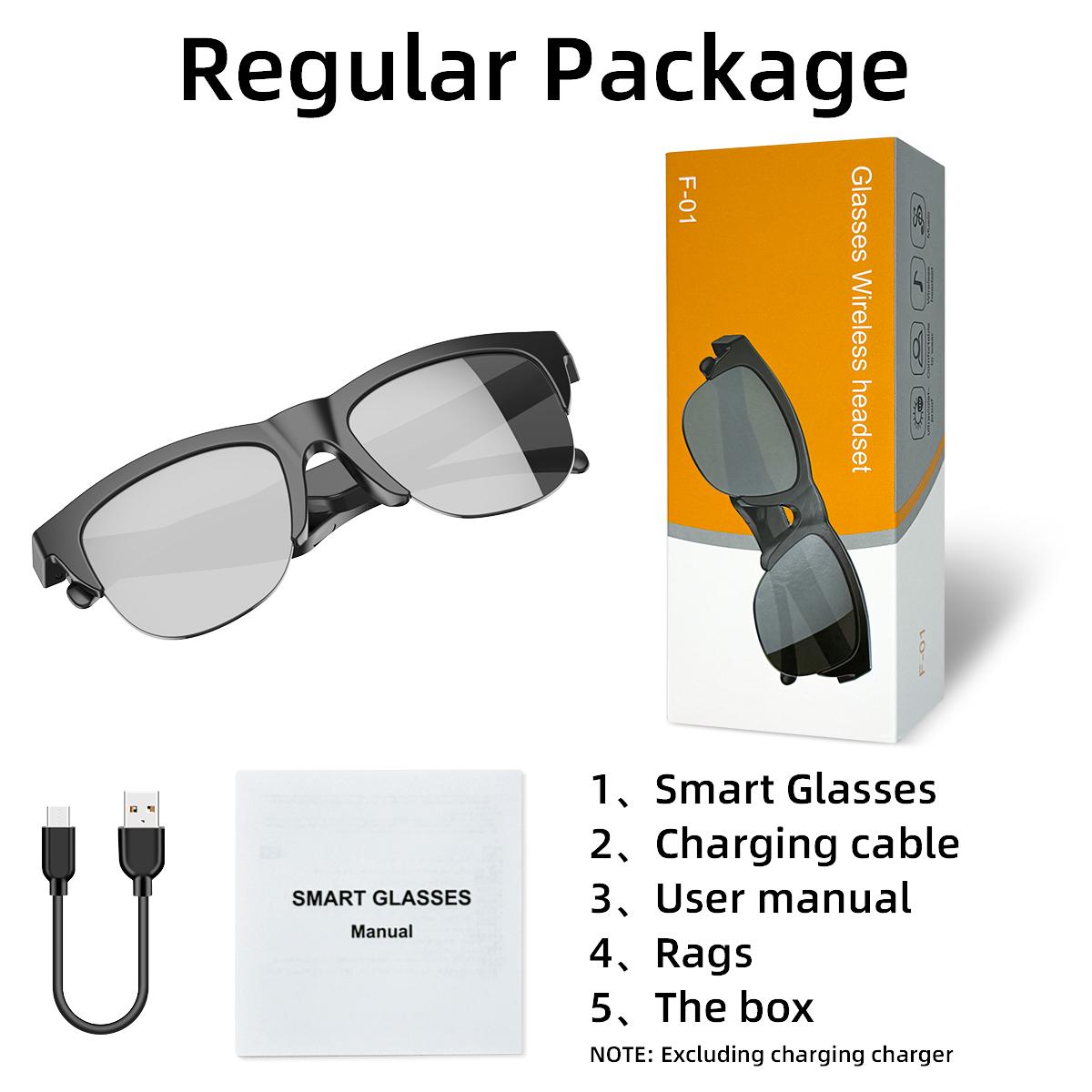 2025 New Technology Smart Glasses F01 IP4 Waterproof Bluetooth Call Headphones Wireless Stereo Android Glasses UV Protective Lenses Connected Bezel Outdoor Sports Sunglasses Electric Scooter Men Women