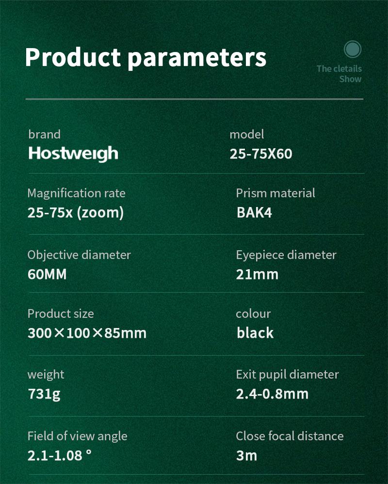 1. 25-75x60 high-definition high magnification birdwatching lens