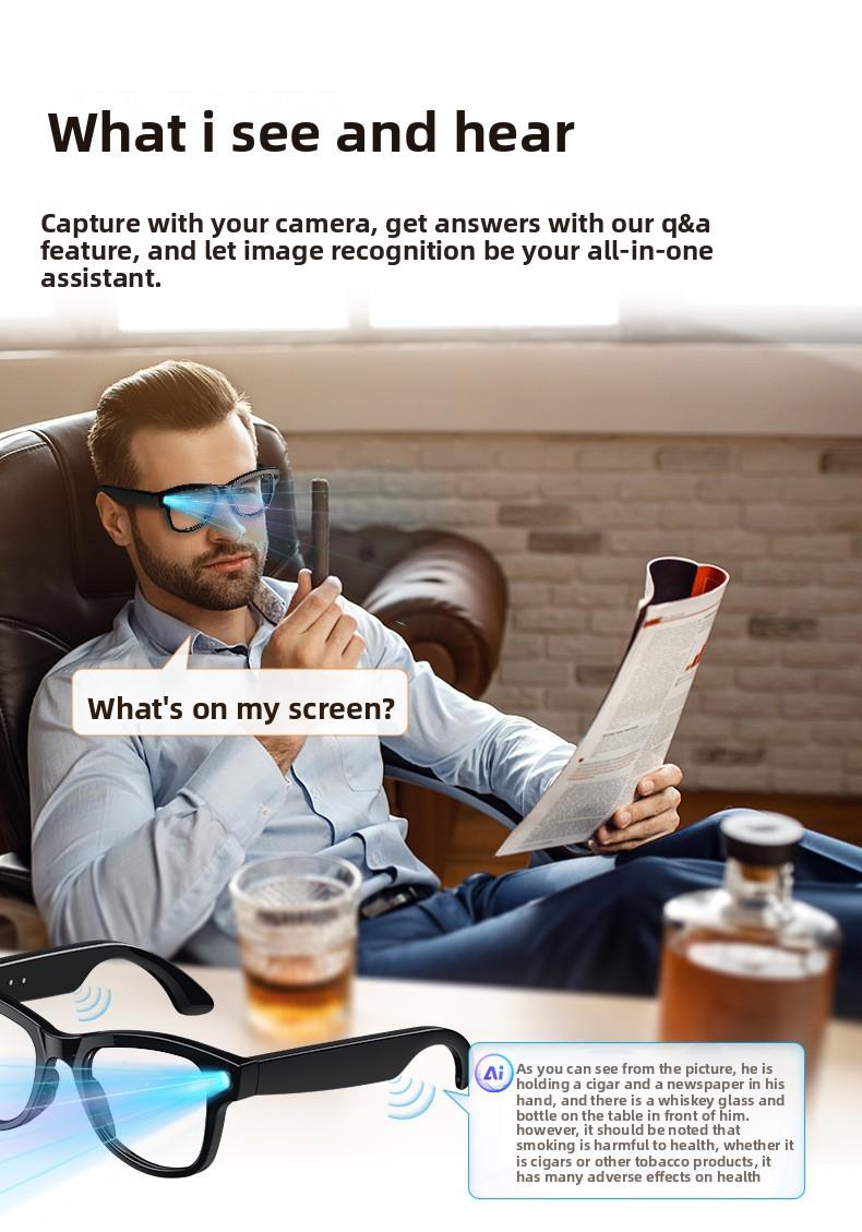 Intelligent AI glasses black technology high definition 800w pixel charging compartment photo recognition translation glasses