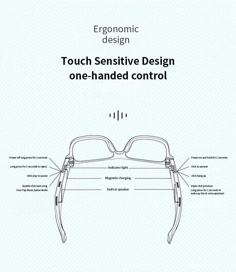 Smart Bluetooth 5.0 AI Glasses with App Control Wireless Music Sunglasses for Calls, Translation, Sport Mode & AI Eyewear