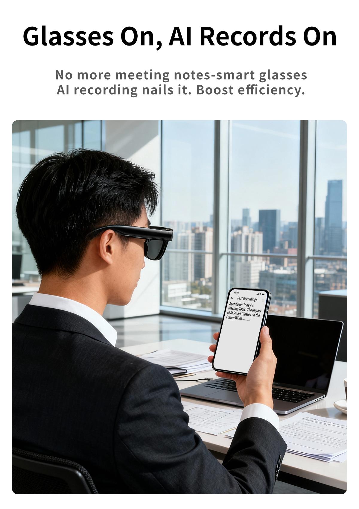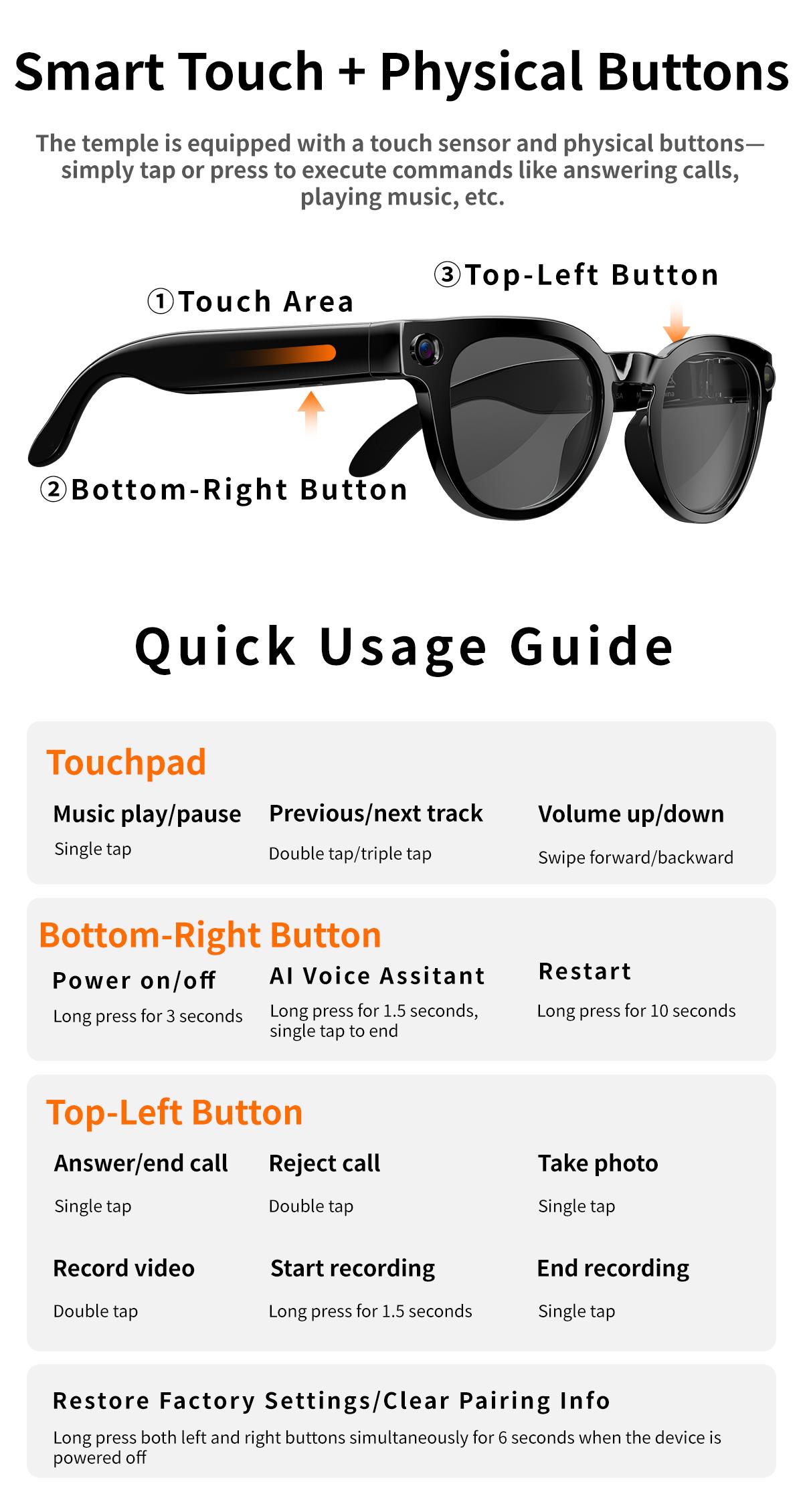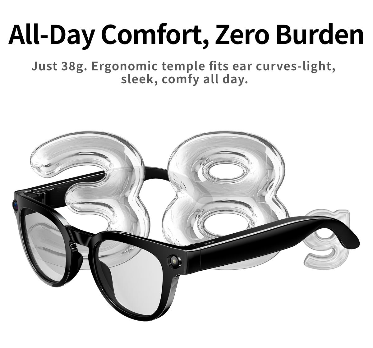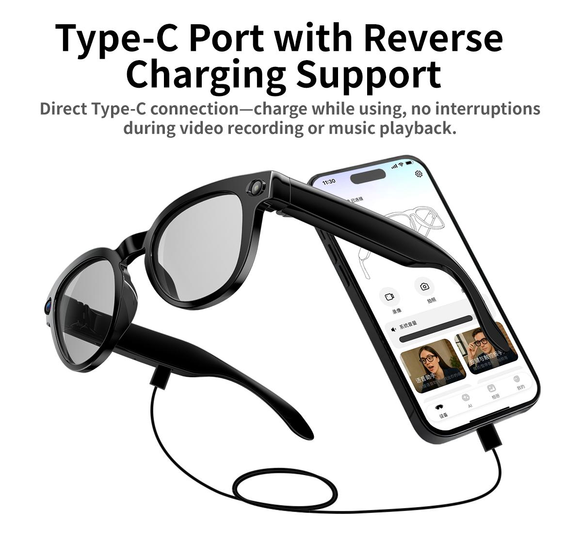 Smart Glasses with Camera Realtime AI Translation AI Assistant Hands Free Recording First Person View Video TypeC Charge Glasses