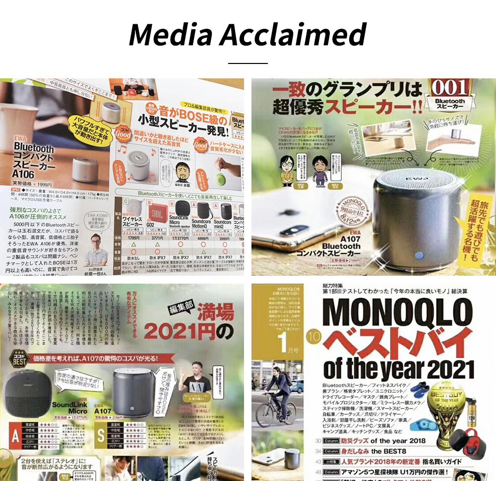 ConclusionThe EWA Travel Case Packed A106 Pro Portable Bluetooth Speaker is a compact, waterproof, and portable speaker with impressive sound quality and long battery life. It is perfect for on-the-go use and comes with various accessories for convenience.