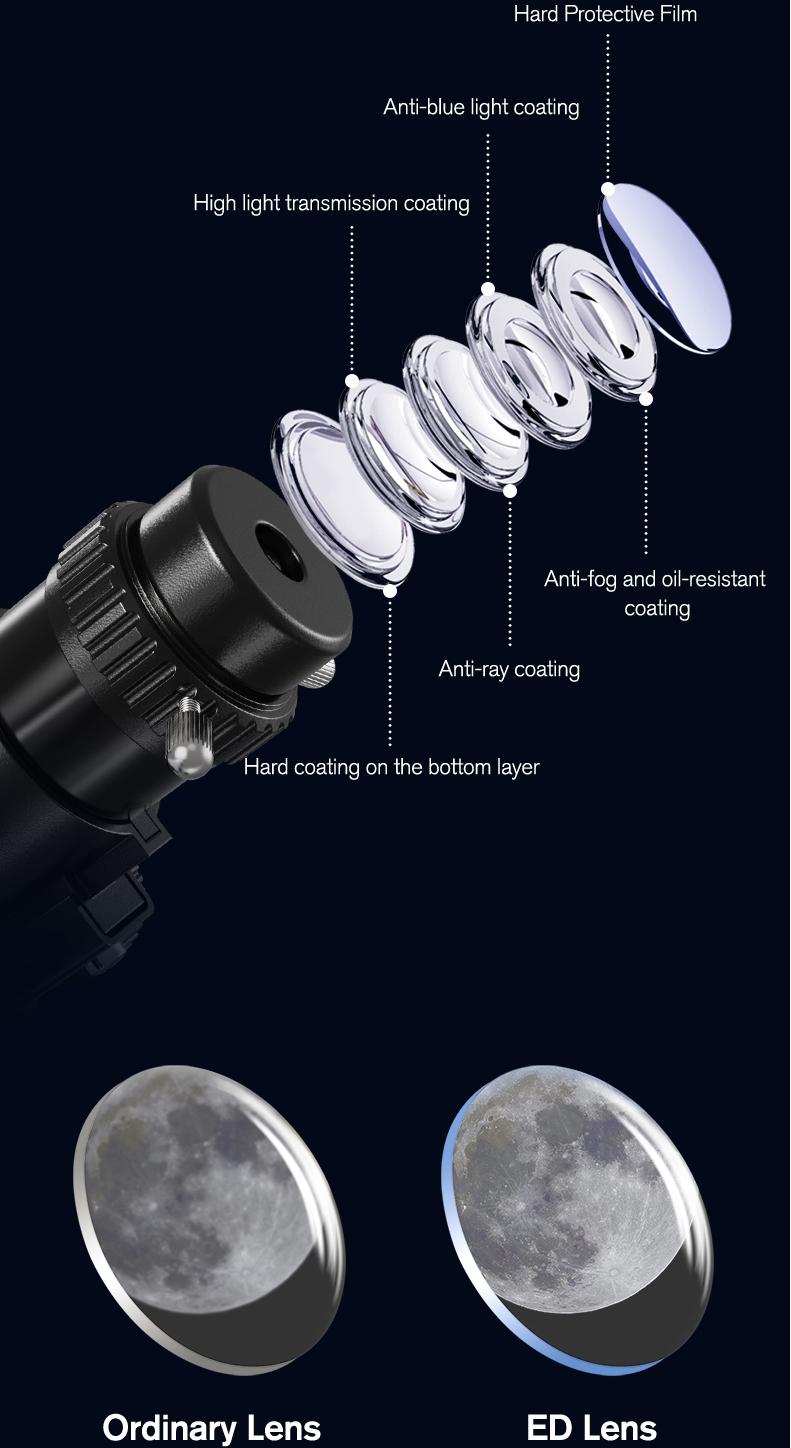 - Sun Filter: Prevents eye damage when looking at the sun directly.