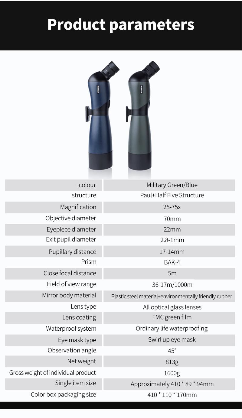 25-75x70 HD Spotting Scope Zoom Monocular BAK4 Prism Waterproof Telescope For Target Shooting Bird Watching Outdoor Camping