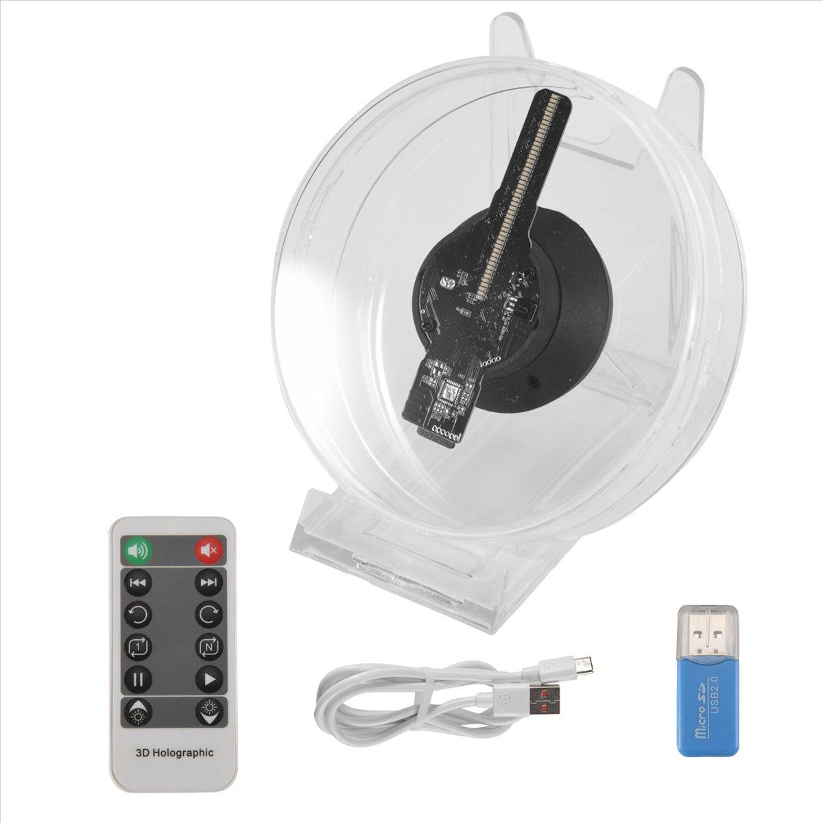 Features: 1. This desktop advertising machine, with 3D holographic display technology, allows you to enjoy more vivid and interesting photos and videos anytime, anywhere. 2. Holographic eye imaging, stereoscopic effect restores real colours for better results. 3. With Bluetooth audio, you can without Bluetooth at the touch of a button on the remote control. 4. A large amount of material, support computer transfer, equipped with a multi-functional remote control simple switch material, a key to turn on the music. 5. Suitable for placing on desks, restaurants, homes, etc. to increase the fun. Specification: Material: Plastic+Metal+Acrylic Imaging size: 8.8 x 8.8cm Viewable angle: 170 ° : support Multi-functional remote control: Support Computer transmission: Support Angle adjustment: Support Brightness adjustment: Support Power supply: plug-in Support format: MP4/AVL/MVB/JPE/PNG Color: As Shown Package Contents: 1 x Desktop advertising machine 1 x Card reader 1 x Remote control 1 x Data cable Only the above package content, other products are not included. Note: Light reflection and different displays may cause the color of the item in the picture a little different from the real thing. The measurement allowed error is +/- 1-3cm.