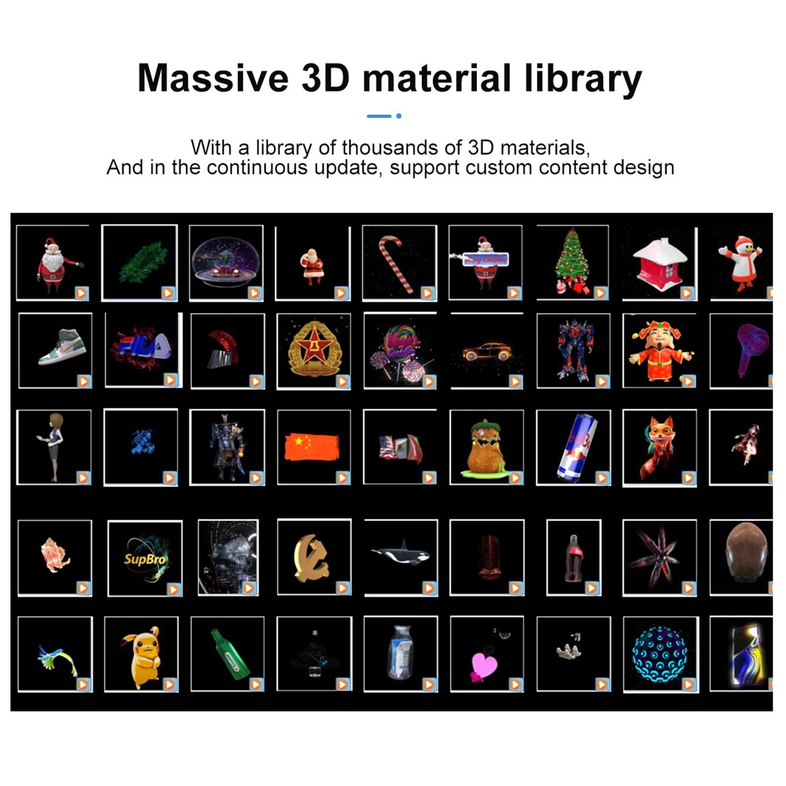 Features: 1. This desktop advertising machine, with 3D holographic display technology, allows you to enjoy more vivid and interesting photos and videos anytime, anywhere. 2. Holographic naked eye imaging, stereoscopic effect restores real colours for better results. 3. With Audio:with buit-in speaker , the video music or sound can be played when you display the video. 4. A large amount of material, support computer transfer, equipped with a multi-functional remote control simple switch material, a key to turn on the music. 5. Suitable for placing on desks, restaurants, homes, etc. to increase the fun.