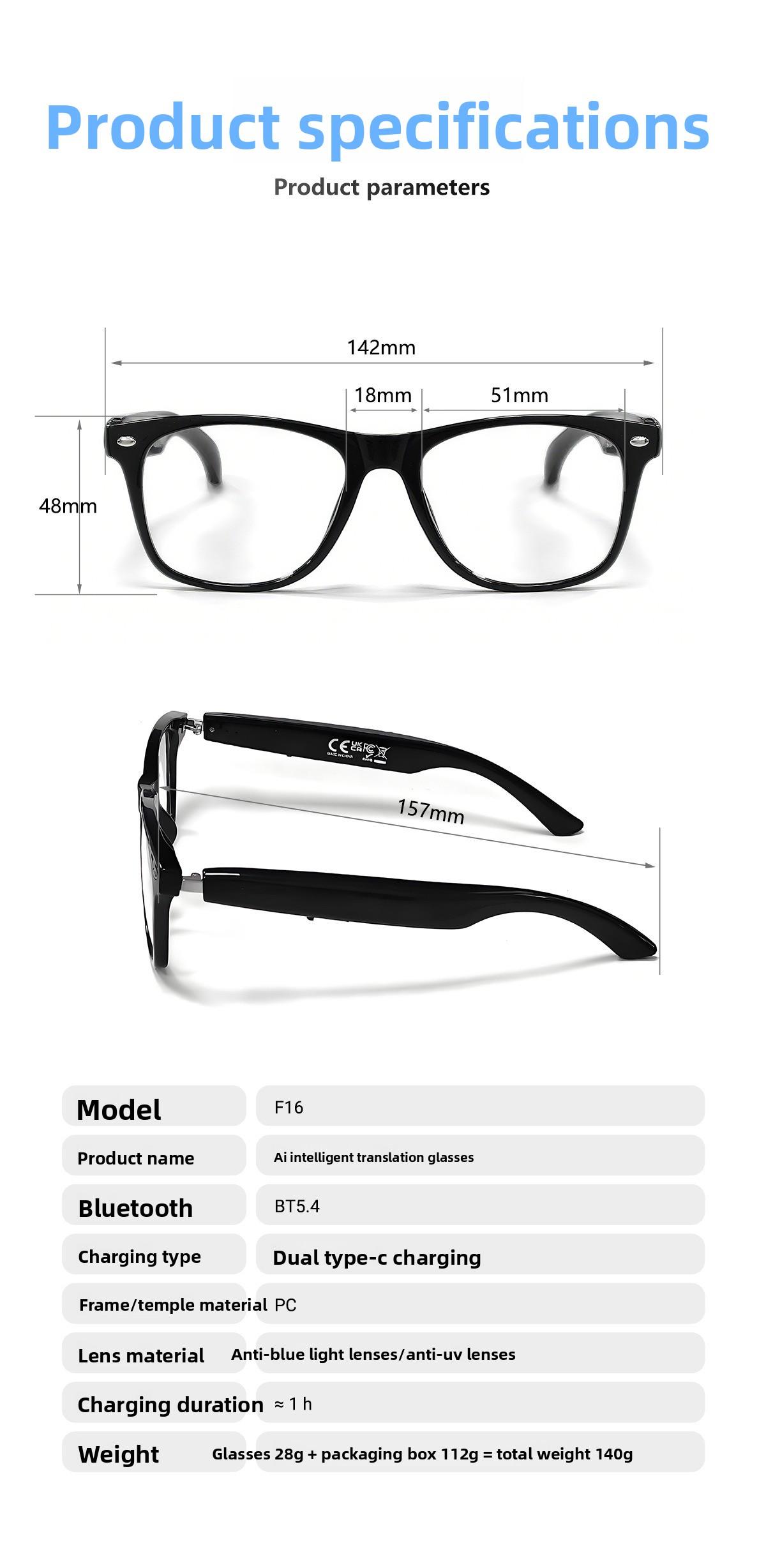 New AI Smart glasses glasses, translation in over 100 languages, for listening to music, making calls and viewing videos