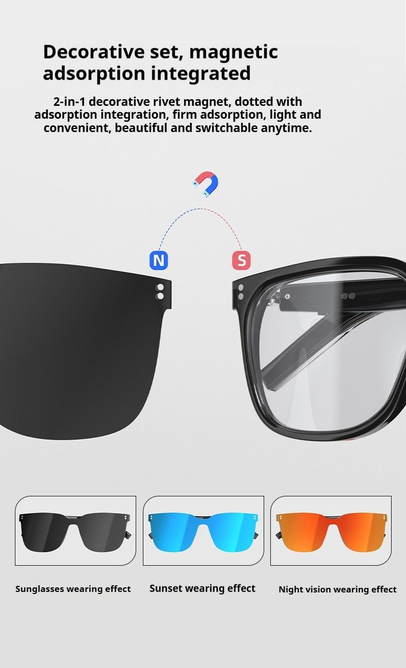 M10A Smart Bluetooth Glasses: Magnetic Polarized Dual Lenses, Multi-Functional Audio & Calling for Outdoor Sports