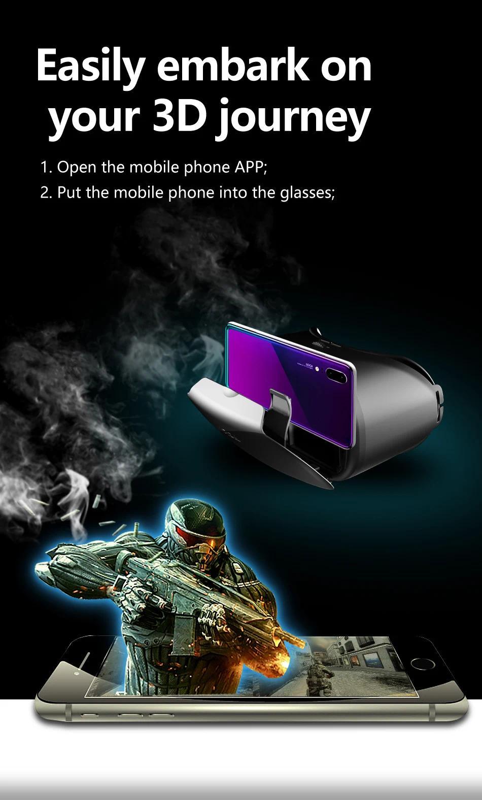 1.The product is a 3D glasses combining watching movies and playing games, which can turn the mobile phone into a cinema /3D game hall.The product does not need to be charged. Put the mobile phone into the VR glasses, download 3D video, orange VR and other mobile phone players to watch 3D movies online or cache for free.