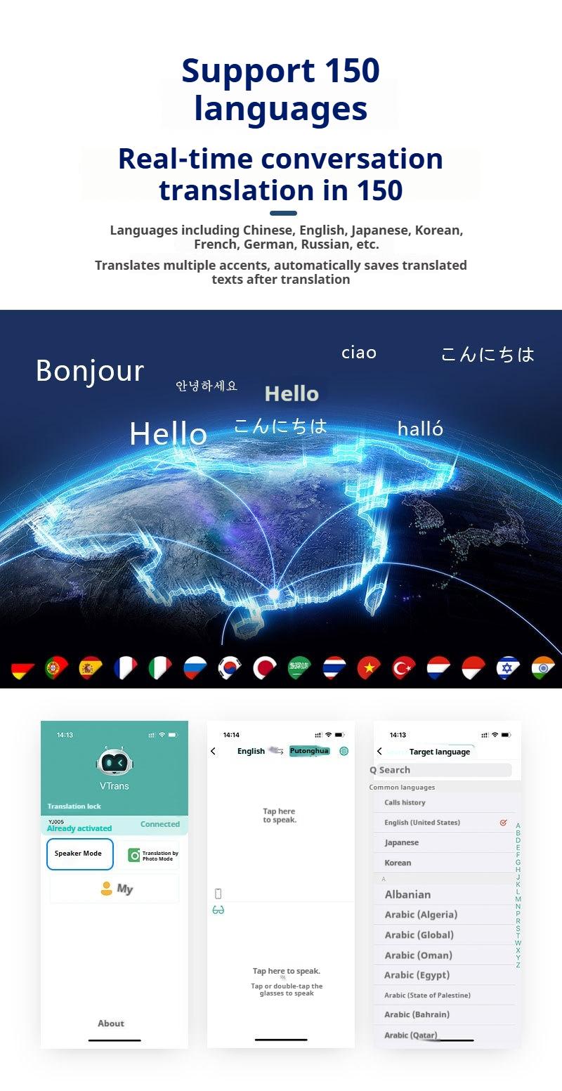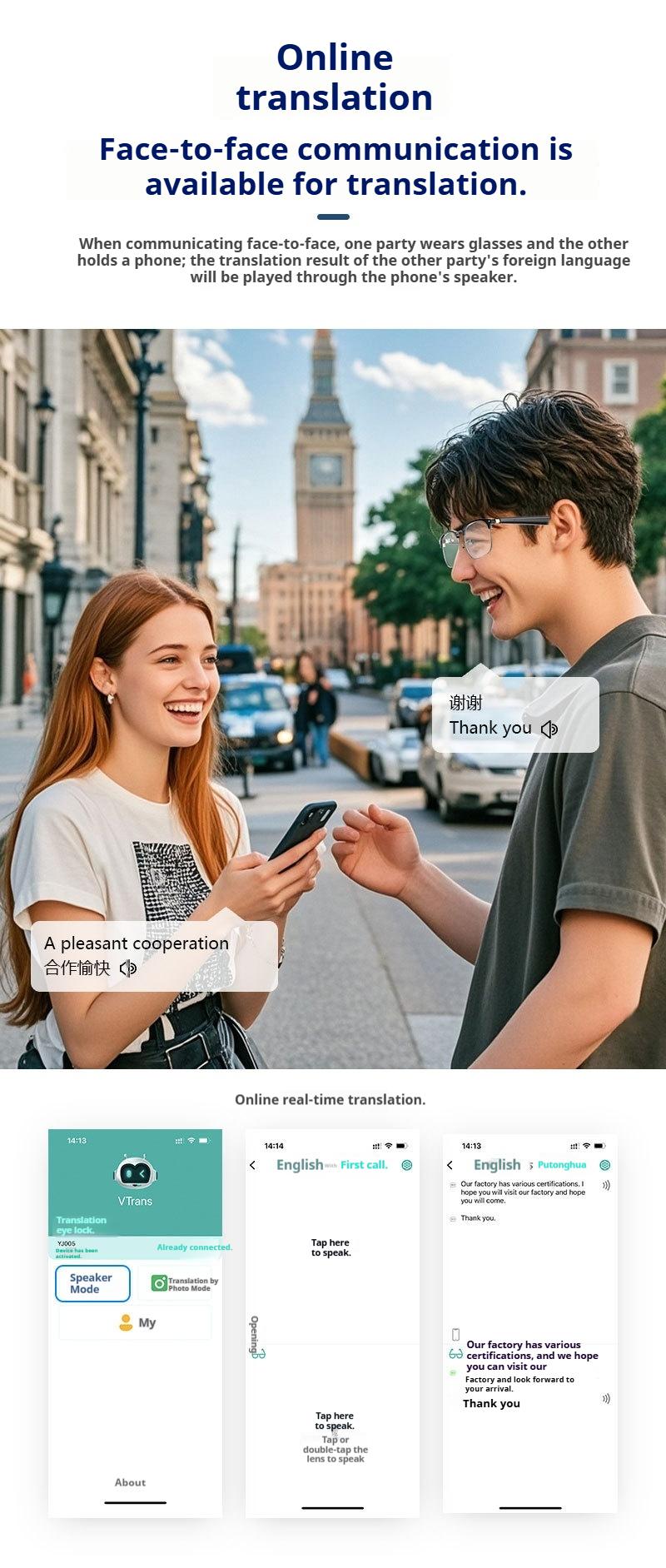 YJ005F AI Smart Translation Glasses, Blue - Light Blocking & Metal Frame, Real - Time 150 Languages Translation, Multi - Scene