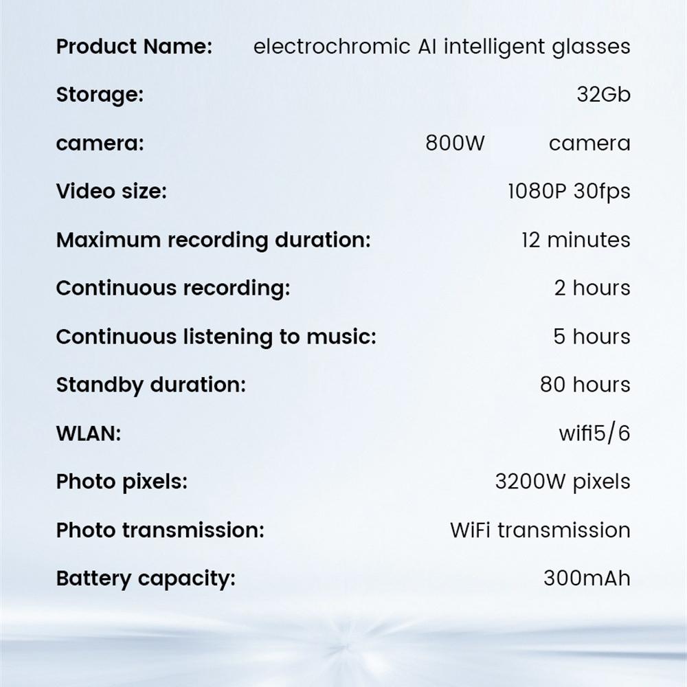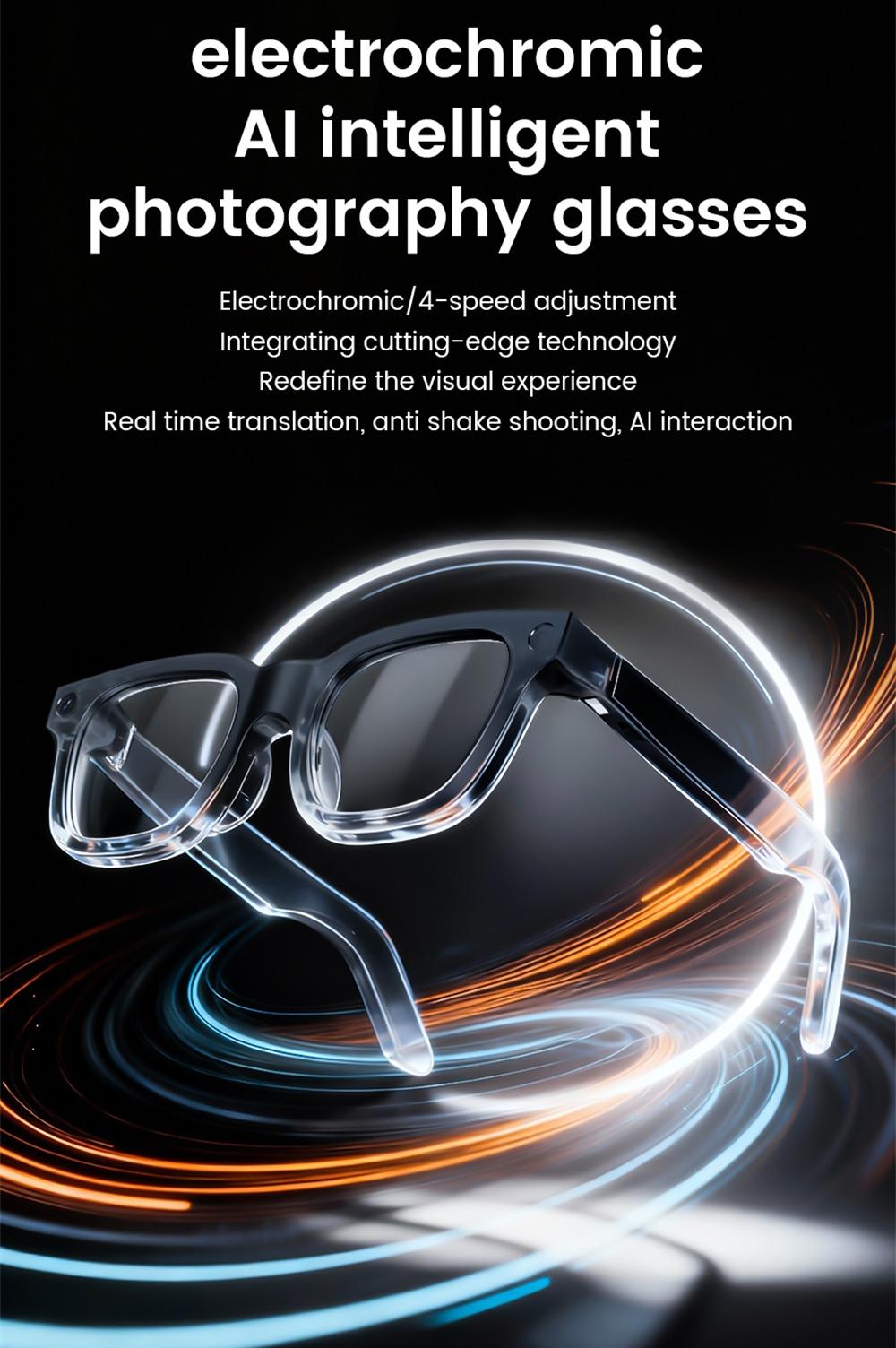 Electrochromic AI intelligent photography glasses. 4-speed adjustment. Real-time translation, anti-shake shooting, AI interaction. 800W camera.