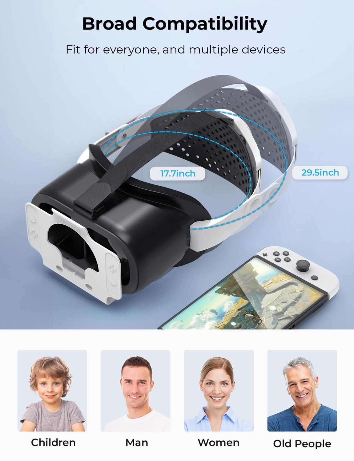 【Say Goodbye To Carboard Materials】: Made of EVA and Oxford materials, super light weight and durable, no worry that your VR glass get mildew in wet weather, includes adjustable headstrap and more thick materials to touch your face, no need to grip the switch console near your head.