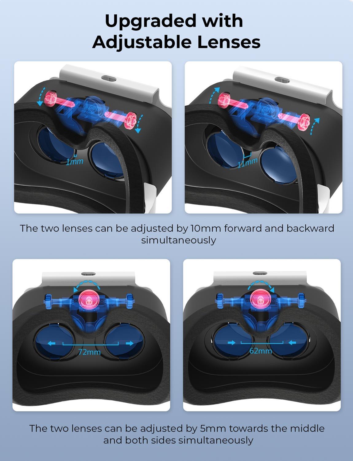 【Adjustable degree】Adjustable power high-definition lens, suitable for all kinds of people with different eyesight, perfectly match focal distance and unilateral myopic alignment for reduced distortion to ensure an optimal viewing experience