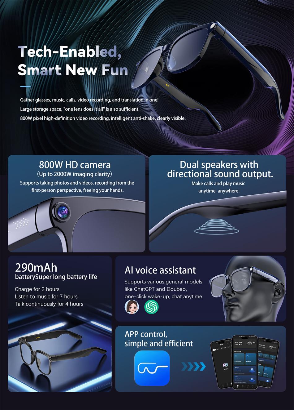 AI Smart Glasses with 800W HD Camera