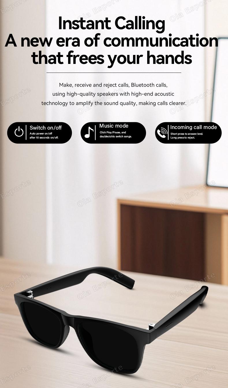 Smart Glasses Headset Bluetooth Call Smart Sunglasses Outdoor UV Protection Travel Runing Cycling Smart Sunglasses for Men Women