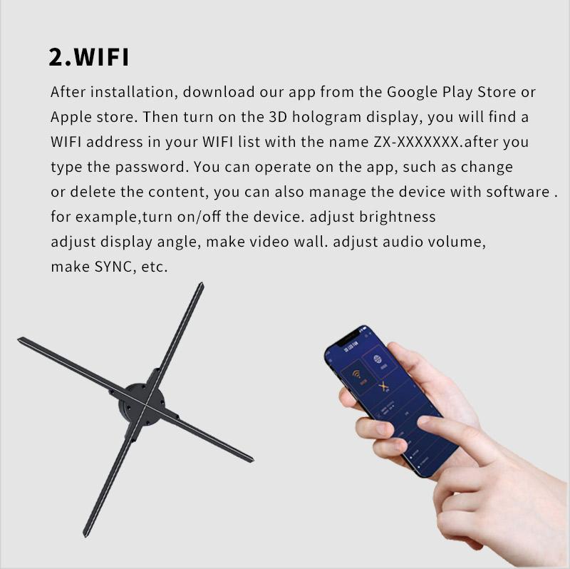 65CM 1152Pcs LED WIFI 3D Projector Light Hologram Projector PC Control LED Holographic Fan logo Advertising Light Remote Player