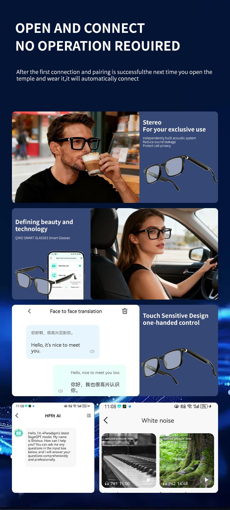 Smart Bluetooth 5.0 AI Glasses with App Control Wireless Music Sunglasses for Calls, Translation, Sport Mode & AI Eyewear