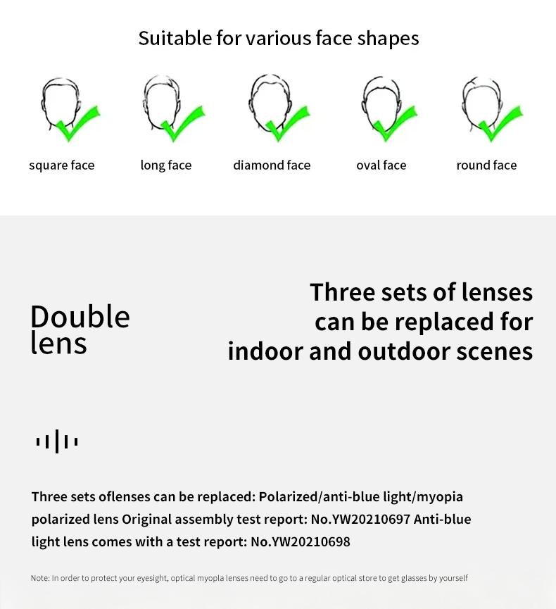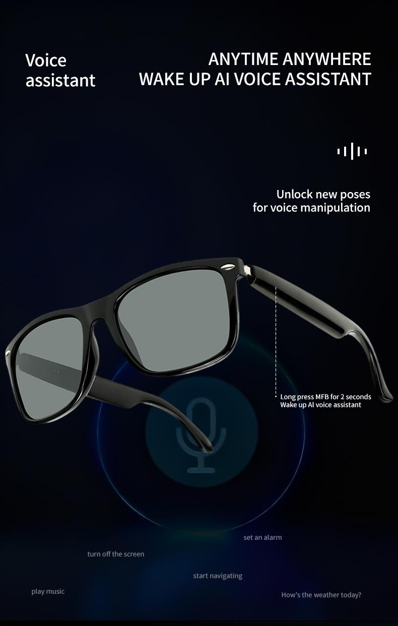 * Humanized Design: Soft nose bridge design, more suitable for face shape, more comfortable to wear. Frame wind guide design, tough lens, impact resistance, reduce the feeling of stuffiness during riding. TR tough frame, comfortable clamping force can effectively reduce head pressure, suitable for most people's face shape. * Dual bluetooth: Using Bluetooth connection, cool Bluetooth 5.3 chip technology, performance upgrade, lower power consumption, longer battery life, smarter algorithm. * Multi-function & simple operation: Smart Bluetooth glasses can answer or reject calls, play and pause music, and wake up voice assistants. Just press and hold the button for 2 seconds to turn on, and press and hold for 5 seconds to turn off. Click the button once to answer or hang up the call, and press and hold for 1.5 seconds to reject the call. When the music is playing, click the button once to play or pause the music. When the music is playing, press and hold the button for 1.5 seconds to wake up the voice assistant. * Ultra-long battery life: using TYPE-C charging interface, built-in 130mAh large battery, charging time is about 1 hour, can be used continuously for 4-5 hours, and can standby time up to 50 hours, no longer have to worry about running out of power. * Wide range of applications: UV400 filters ultraviolet rays, which can effectively reduce damage to the eyes. It is suitable for mountaineering, seven-star, fishing, running and leisure and other use environments.