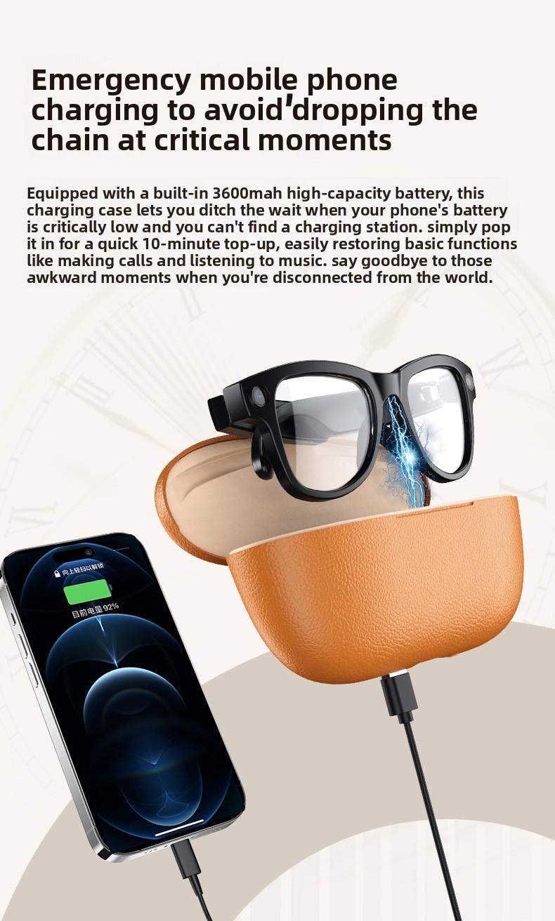 Intelligent AI glasses black technology high definition 800w pixel charging compartment photo recognition translation glasses