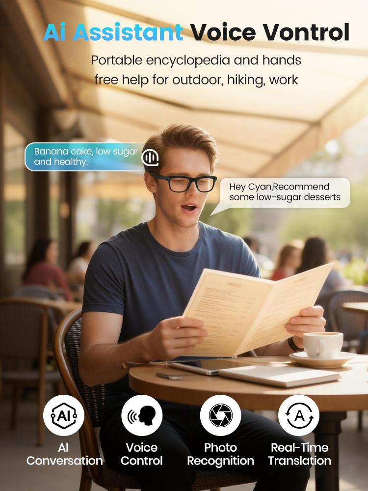 800W HD Camera Glasses, 1080P Video Recording, ChatGPT AI Assistant, Real Time Translation, Voice Assistant, 32GB RAM