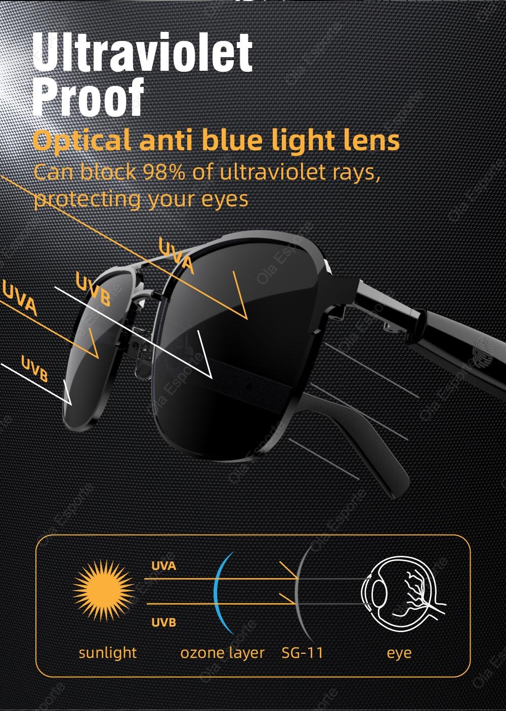 SG11pro Bluetooth Smart Glasses Audio Music Calls Anti-blue Light UV400 Polarized Lens Men Wireless Smart Sunglasses Headphones