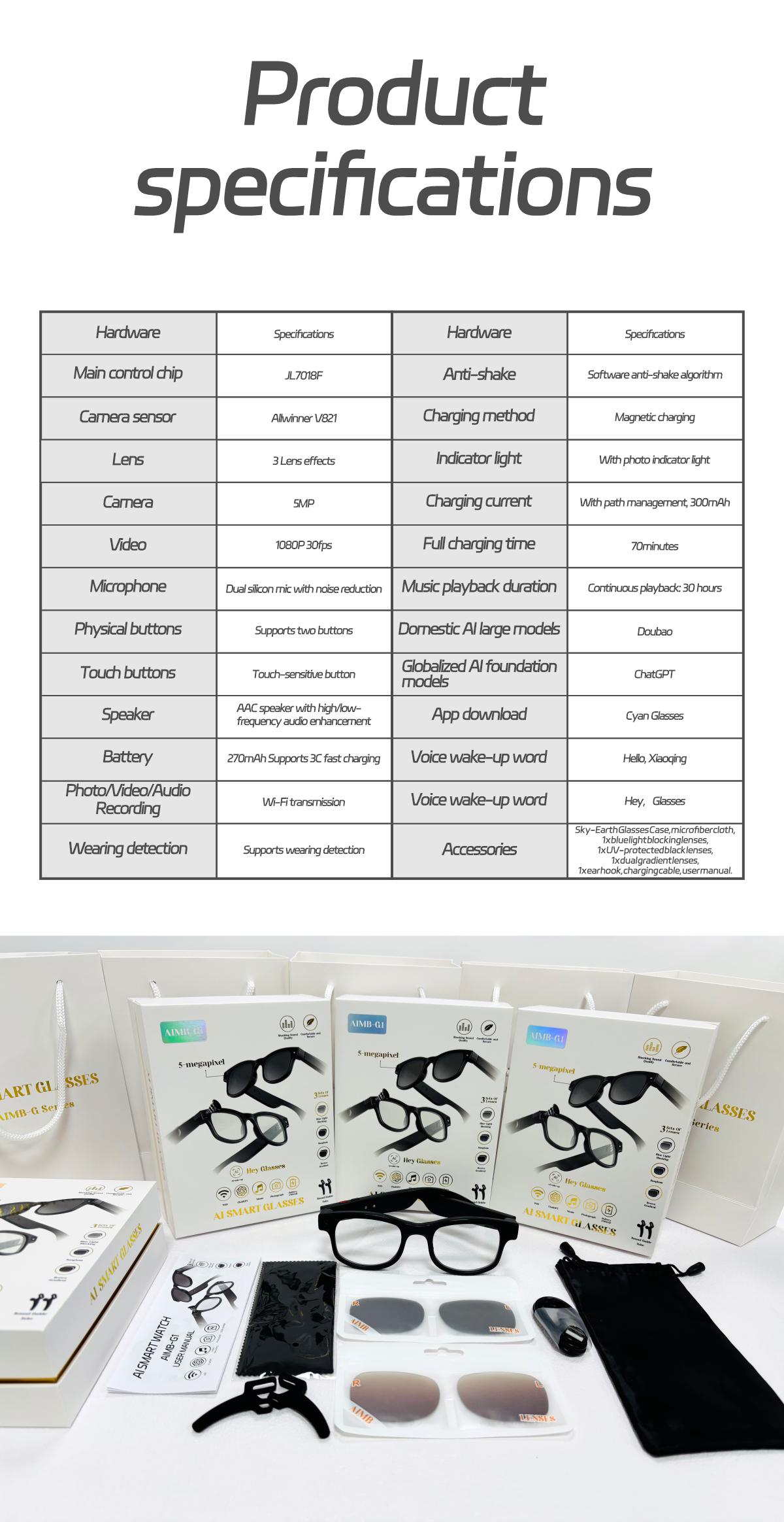 ▪Equipped with cutting-edge Wi-Fi 6 and Bluetooth 5.3 protocols,these glasses deliver ultra-low power consumption,fast data transfer,and rock-solid device connections-redefining seamless wireless performance.