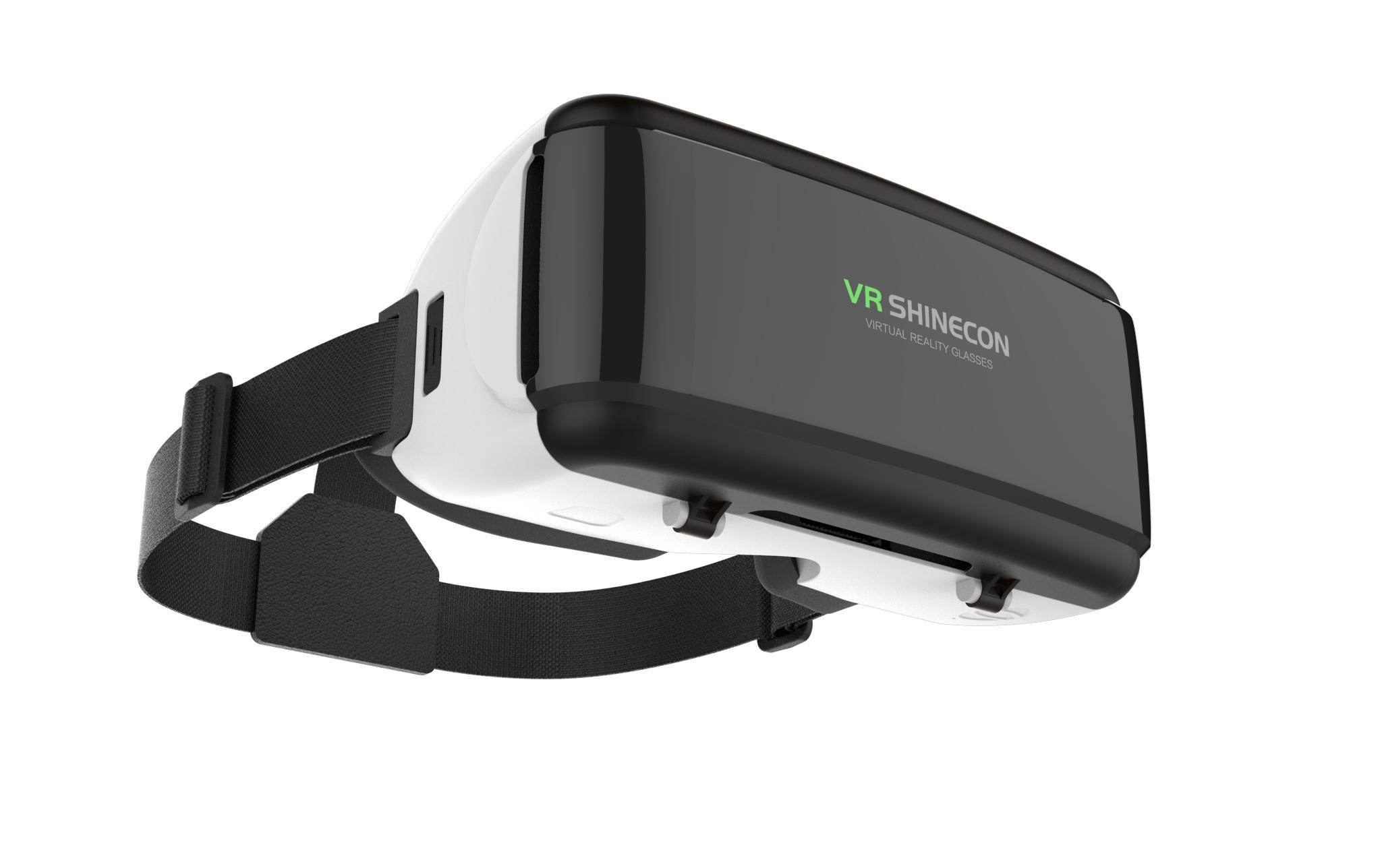 VR SHINECON G06E 3D virtual reality VR head-mounted glasses for 4.7-6.53 inch smartphones with adjustable interpupillary and object distance focal length settings that allow nearsighted people to clearly enjoy the 3D virtual world. Adjustable and flexible headband mirrors for VR SHINECON 3D glasses The button of the box adopts an adsorption switch design, a convenient and firm elastic band design, and the 3D glasses lens that is convenient to wear on the head reduces the impact on particles, that is, the use of a large screen optimizes VR