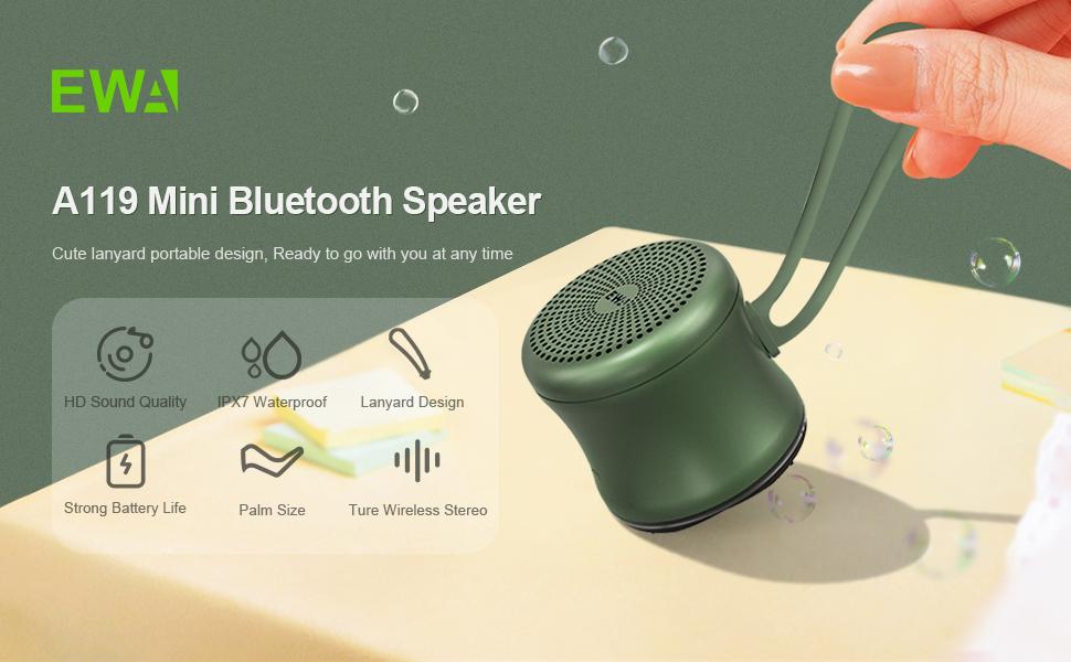 【Mini Size but Loud Volume】 The A119 small speaker delivers powerful sound with impressive bass, through 3W a high performance driver and passive subwoofer. The sound quality is loud and clear. When on full blast the sound doesn’t get distorted. So much power and quality packed into such a small Bluetooth speaker!