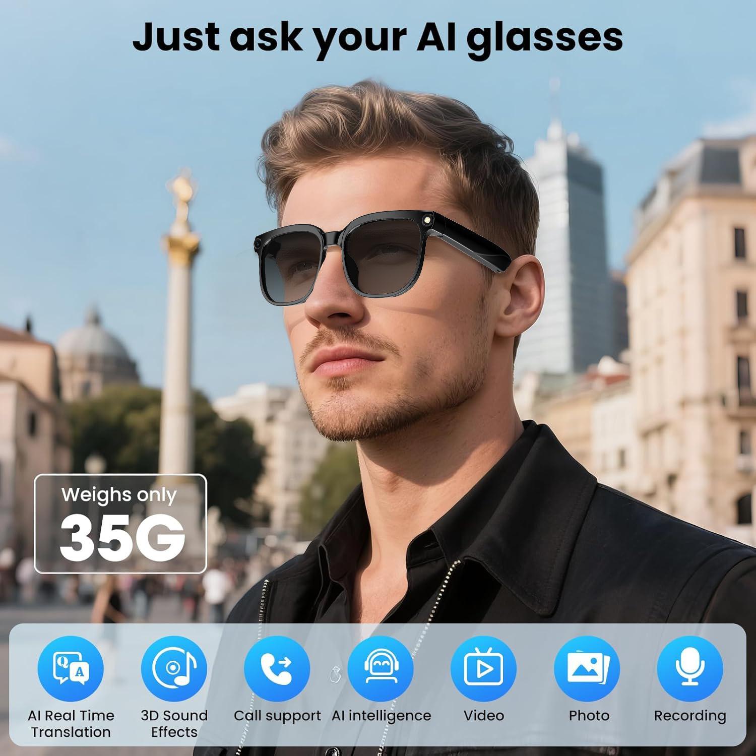 AI Smart Glasses 2K HD 800W Pixel Camera Video Outdoor Sport Sunglasses AI ChatGPT Translation Recording Bluetooth Call Glasses