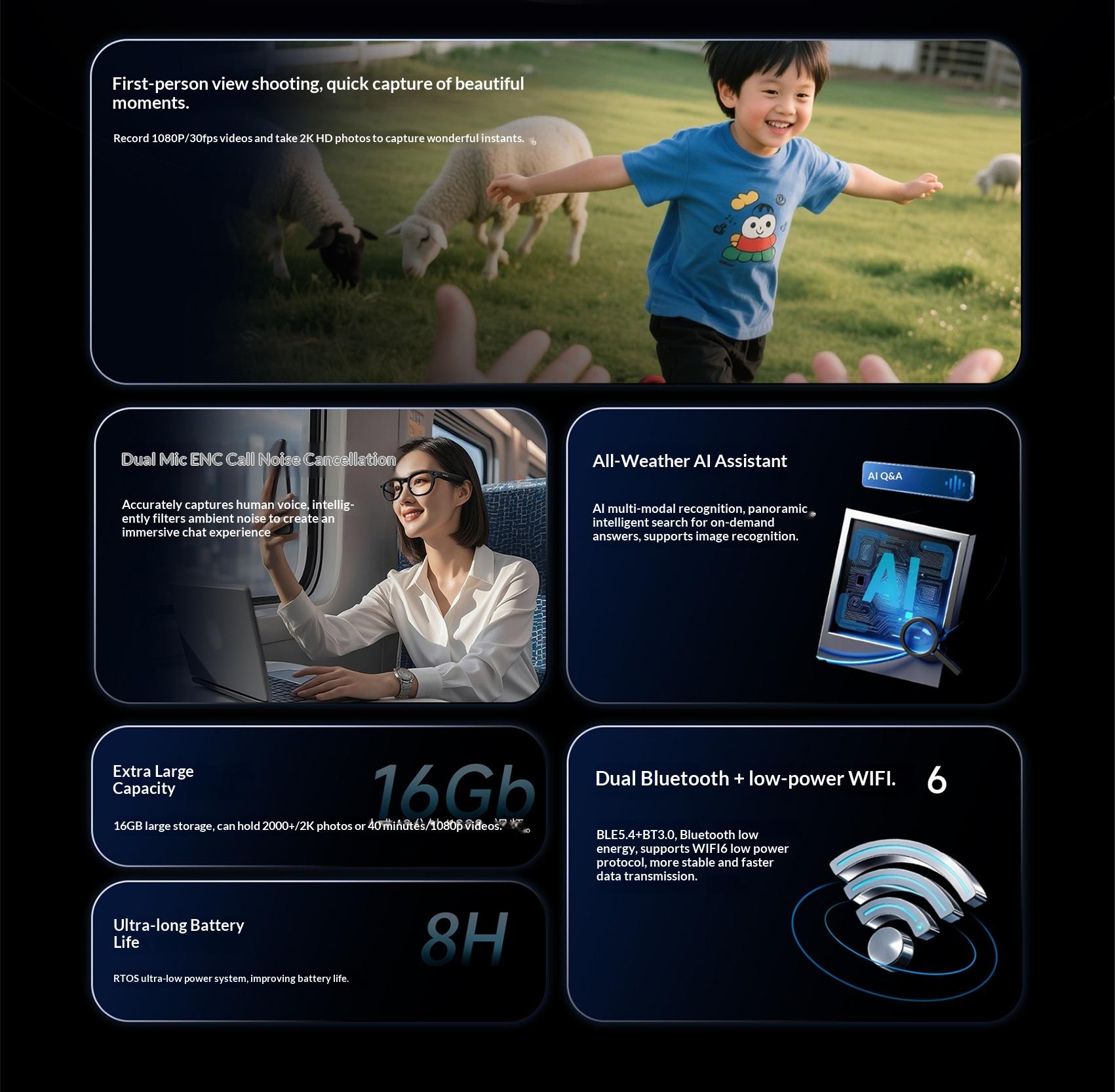 AI Smart Glasses 800W Pixels Camera Photo Video Recording Sunglasses WIFI Transmission Call Voice Assistant Translation glasses