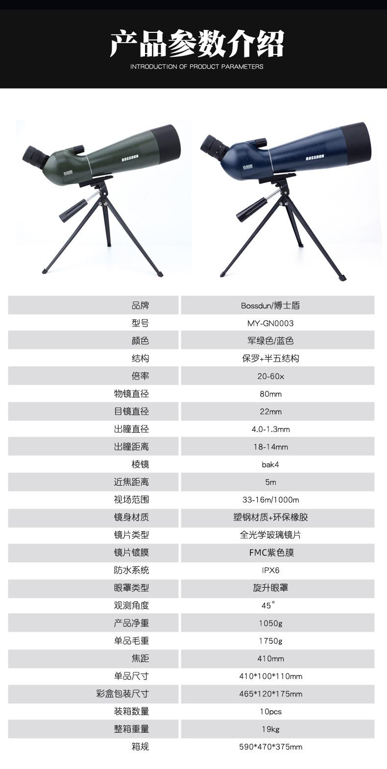 BOSSDUN 20-60x80 45Degree Spotting Scope Zoom Telescope Multi-Coated for Bird Watching Moon View Hunting Match