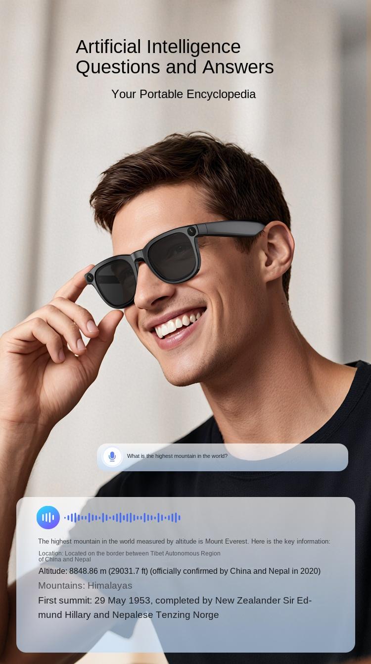 2025 New Bluetooth Intelligent Sunglasses AI Intelligent Photography Translation Call Photo Music Multi functional Sun glasses