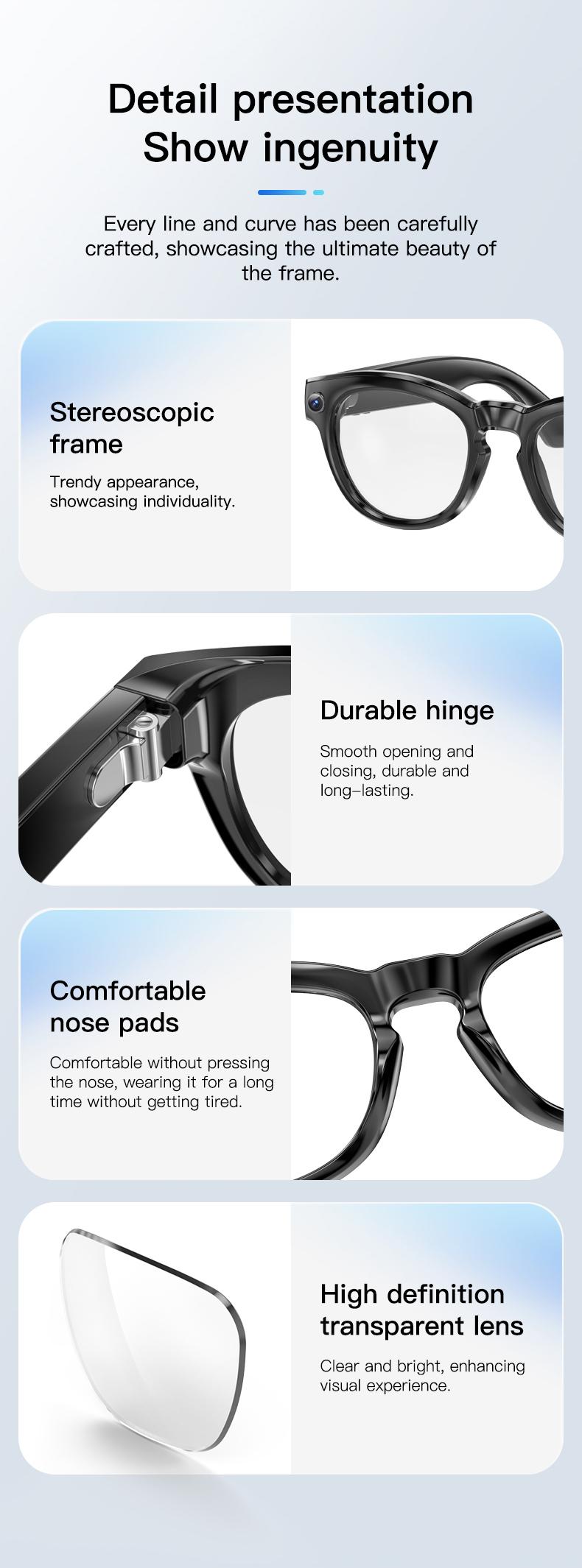 2025 New Smart Glasses Recording AI Photos 260mAh Large Battery Bluetooth Call Automatic Color Change Glasses for Men and Women