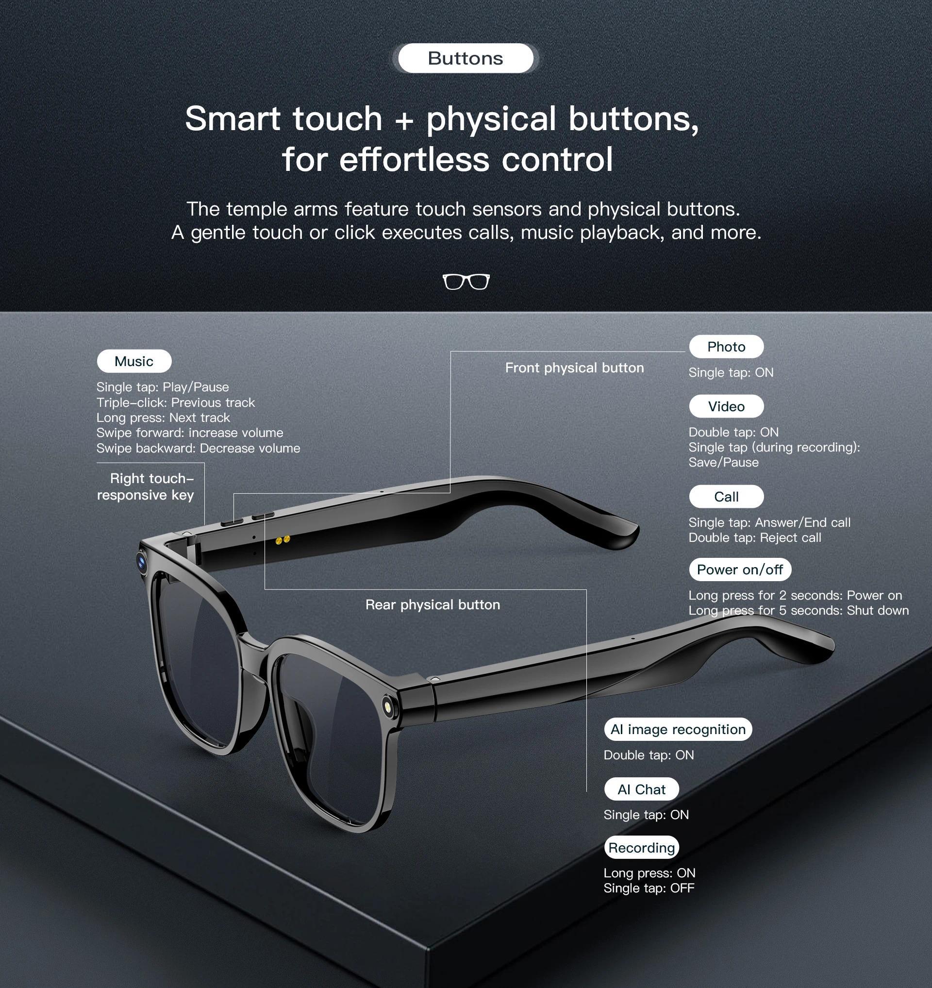2026 New Smart Glasses 8MP HD Camera AI Voice Photo Video Recording Translation Long Battery Life Music Waterproof Smart Glasses