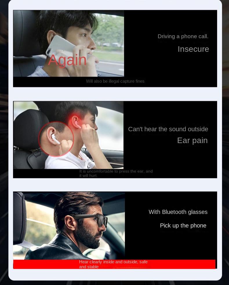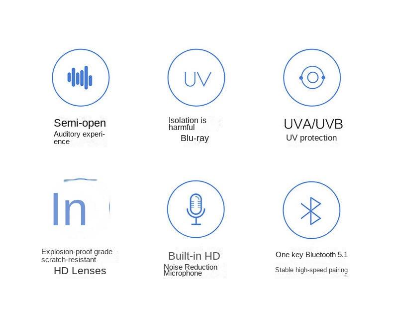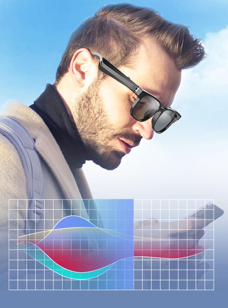 5.1 Bluetooth Smart Glasses Sunglasses UV High-frequency Call Music Bluetooth Audio Glasses Ultra Long Standby Time Wearable Black